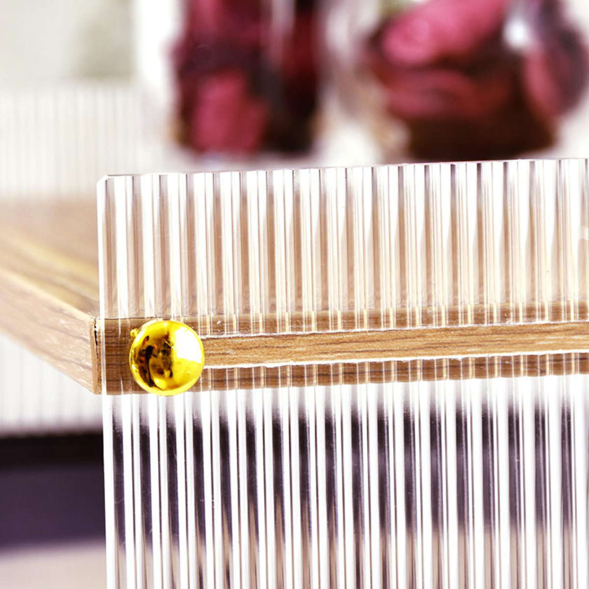 デスクや棚、カウンターなど日常の置きたい場所に。リブ加工でリズムのある立体的なアクリルが光をやさしく反射し、空間に軽やかな抜け感をプラスします。