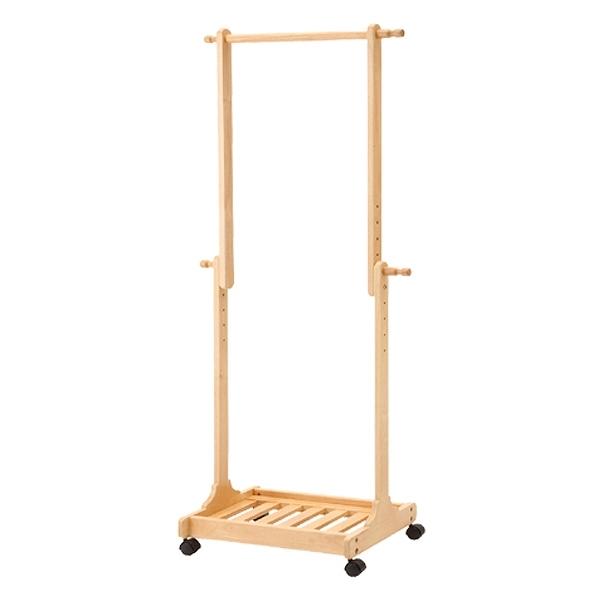 伸張式ハンガーラック 木製 ( コートハンガー パイプハンガー キャスター付き ) 【 ナチュラル 】