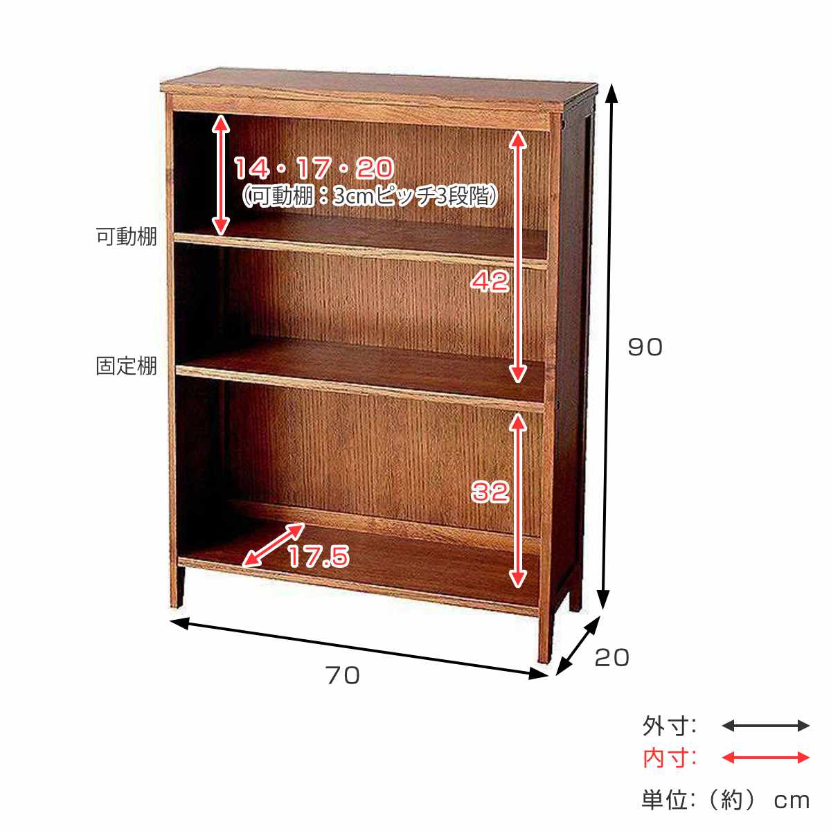 本棚 幅70cm 3段 天然木 hommage オマージュ ( ラック 棚 カントリー調 文庫本ラック 花台 木製 書棚 スリム 多目的ラック シェルフ 可動棚 背面化粧 )