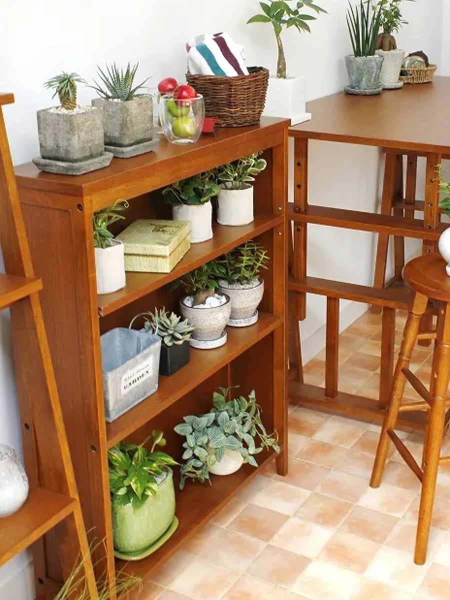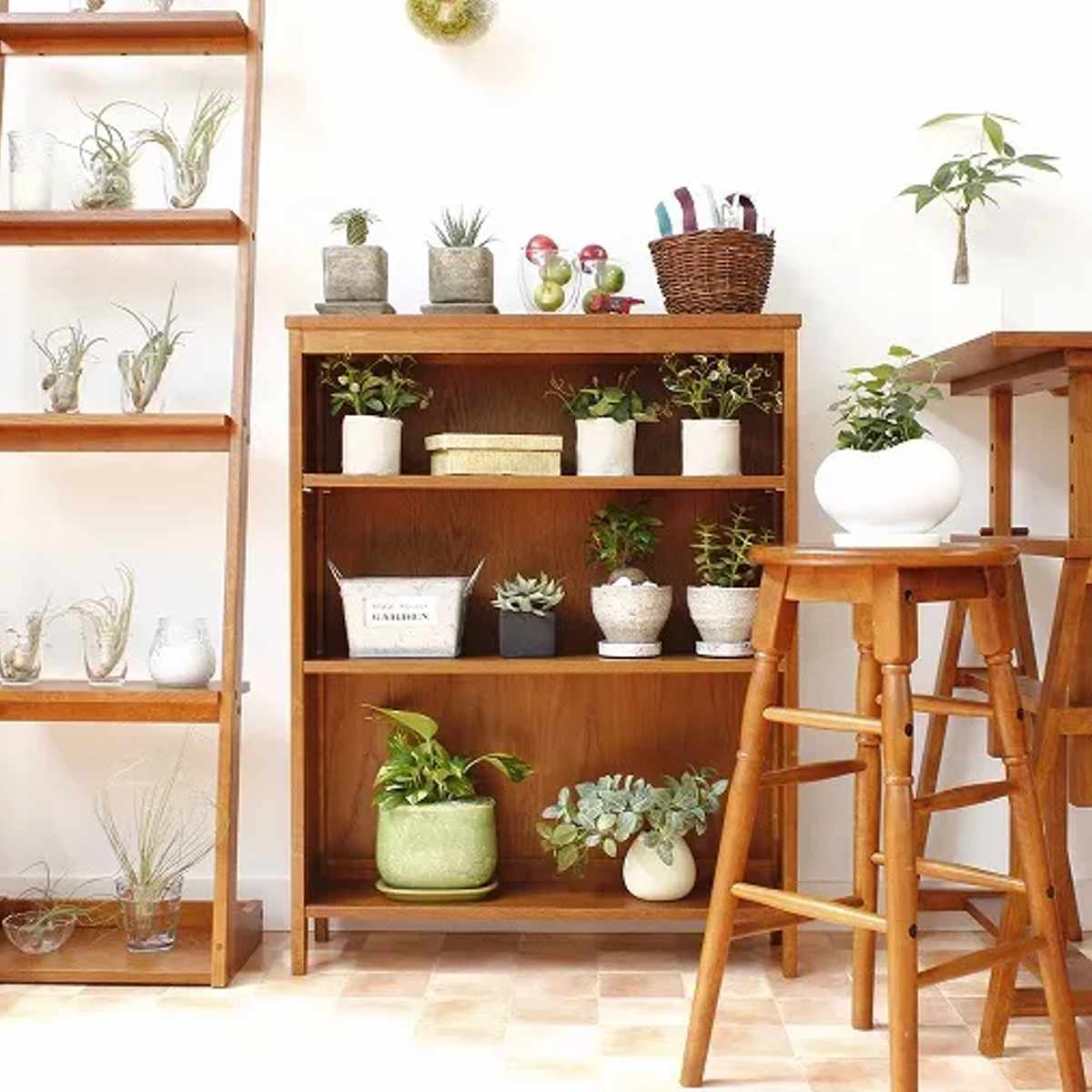本だけでなく、植物や雑貨、小物などを自由に飾って、自分好みのお部屋を作ることができます。カゴやBOXを使えば、生活感を隠しながら収納できます。背の低い設計なので、上部もディスプレイスペースとして活用することが可能です。