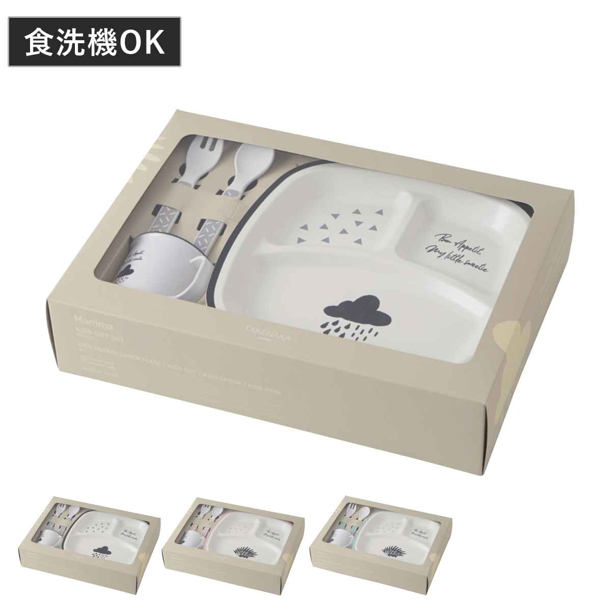 ●ランチプレート、キッズカップ、スプーン、フォークの4点セットです。