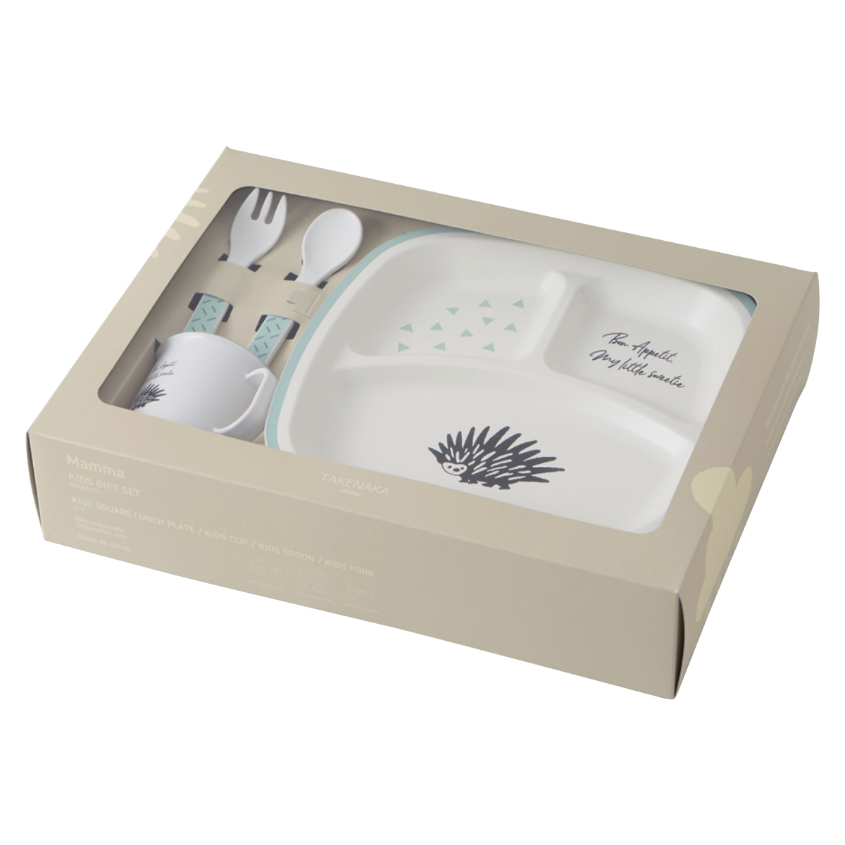 ギフトセット Mamma 4点セット ( 日本製 BPAフリー プレゼント 出産祝い ベビー 食器セット 離乳食 かわいい おしゃれ 男の子 女の子 ランチプレート コップ スプーン フォーク 食洗機対応 レンジ対応 食器 ギフト お祝い 贈り物 ) 【ミント】