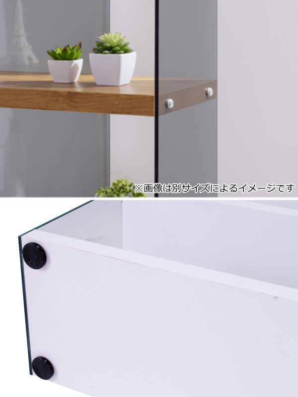 側面と背面にガラスを使用しているので、圧迫感がなくスッキリとした印象です。ガラスが、光を通して雑貨や小物をより美しく引き立たせるため、ディスプレイラックとしてお使いいただくのがおすすめです。