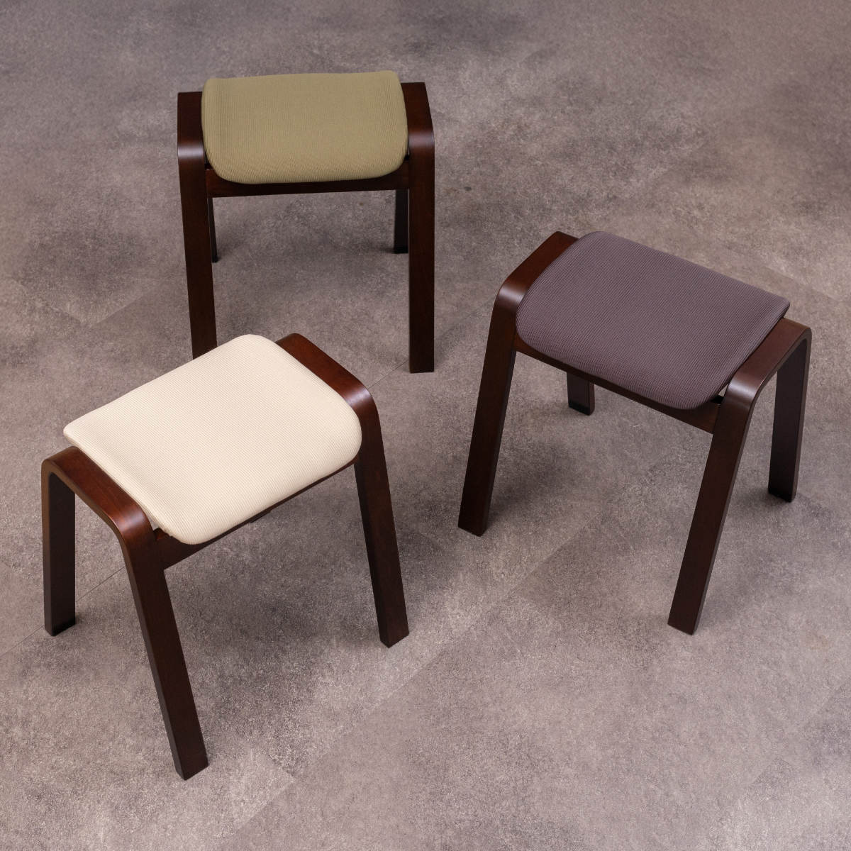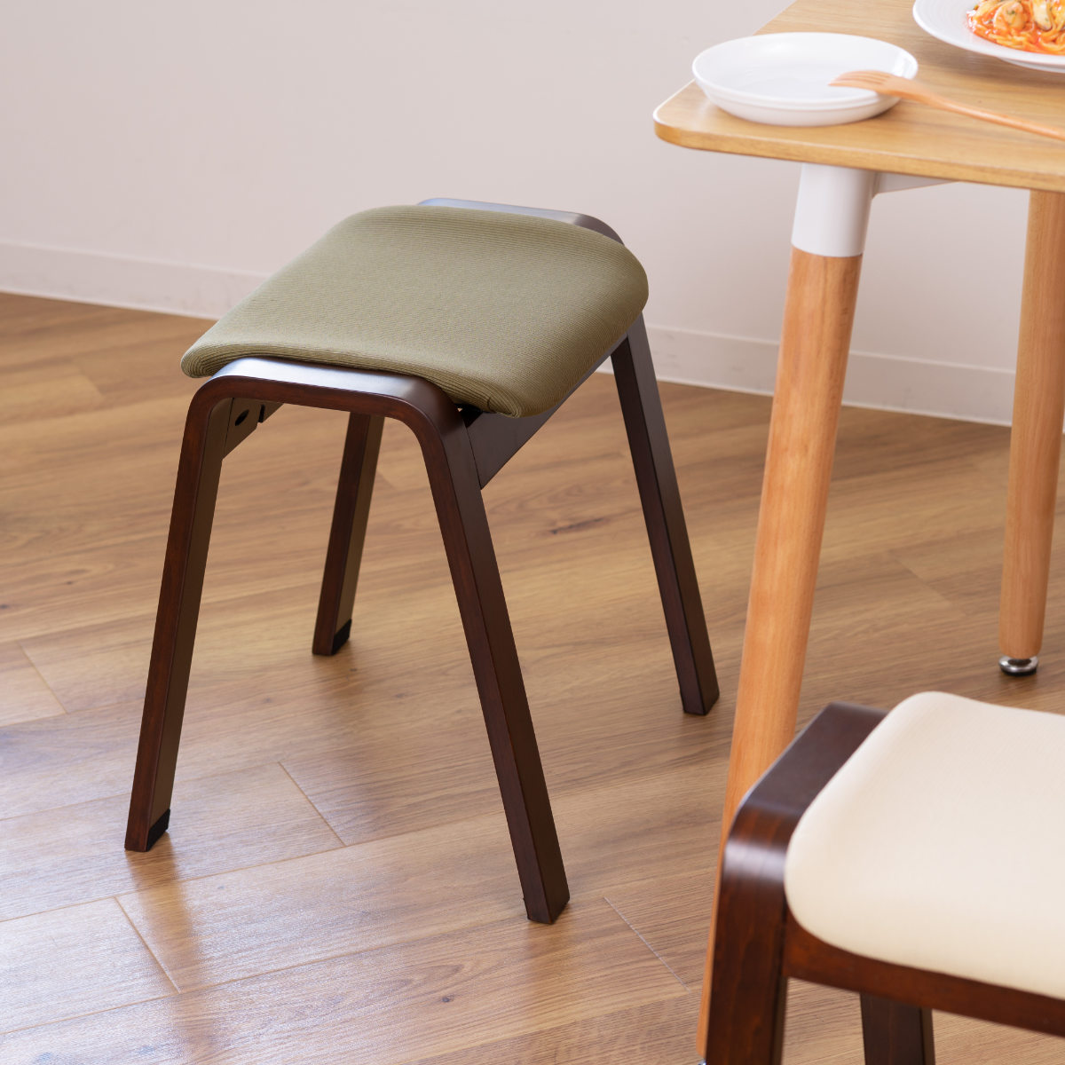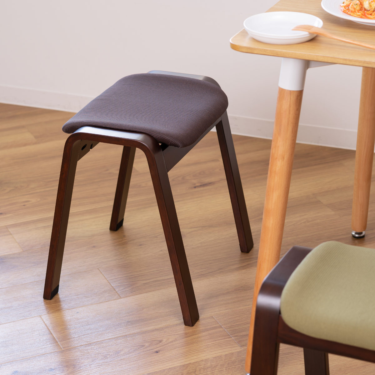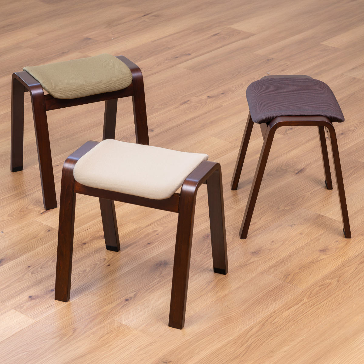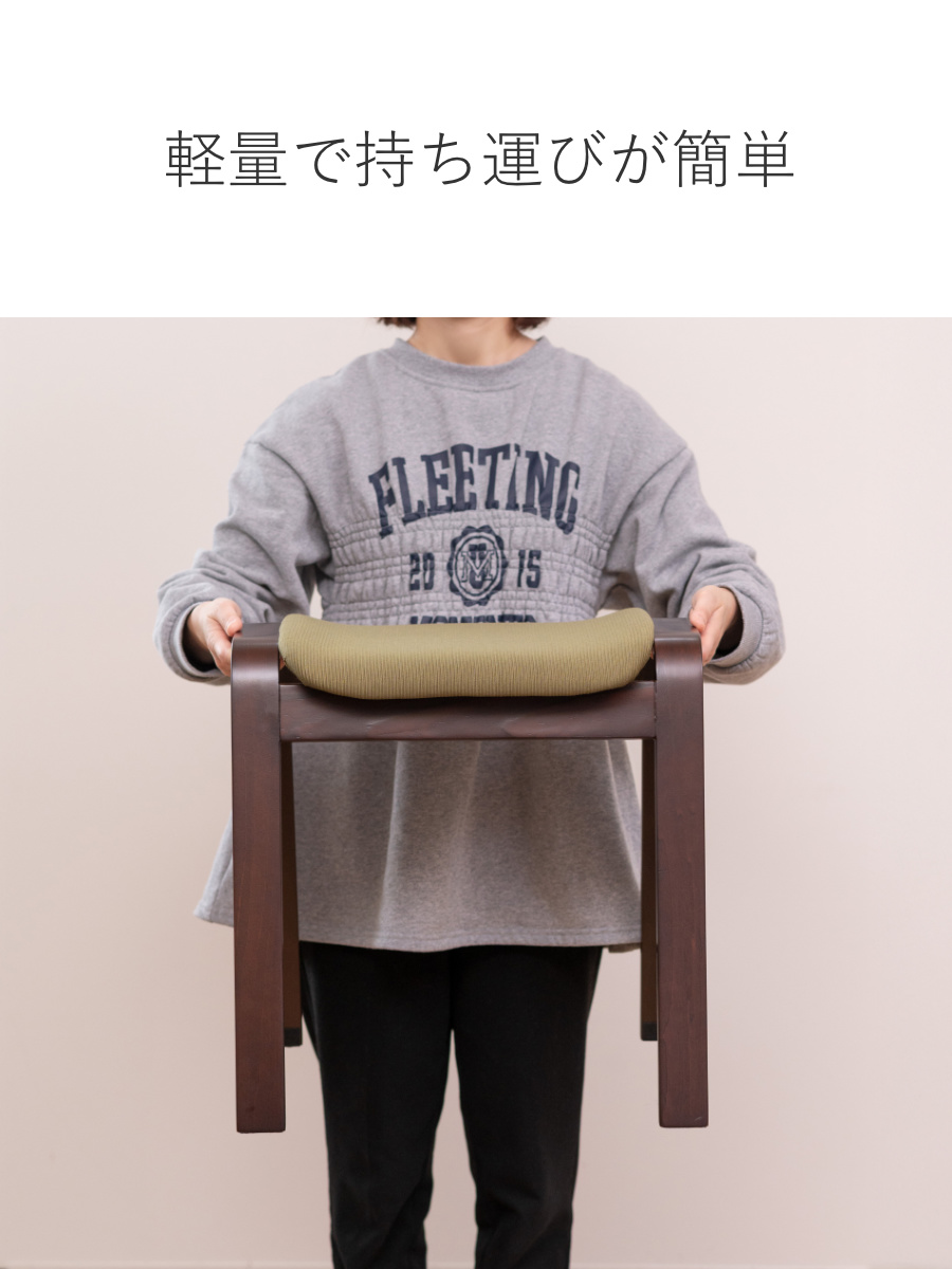スツールのフレーム・脚部には、強度が高い積層合板を使用しており安心してご使用いただけます。