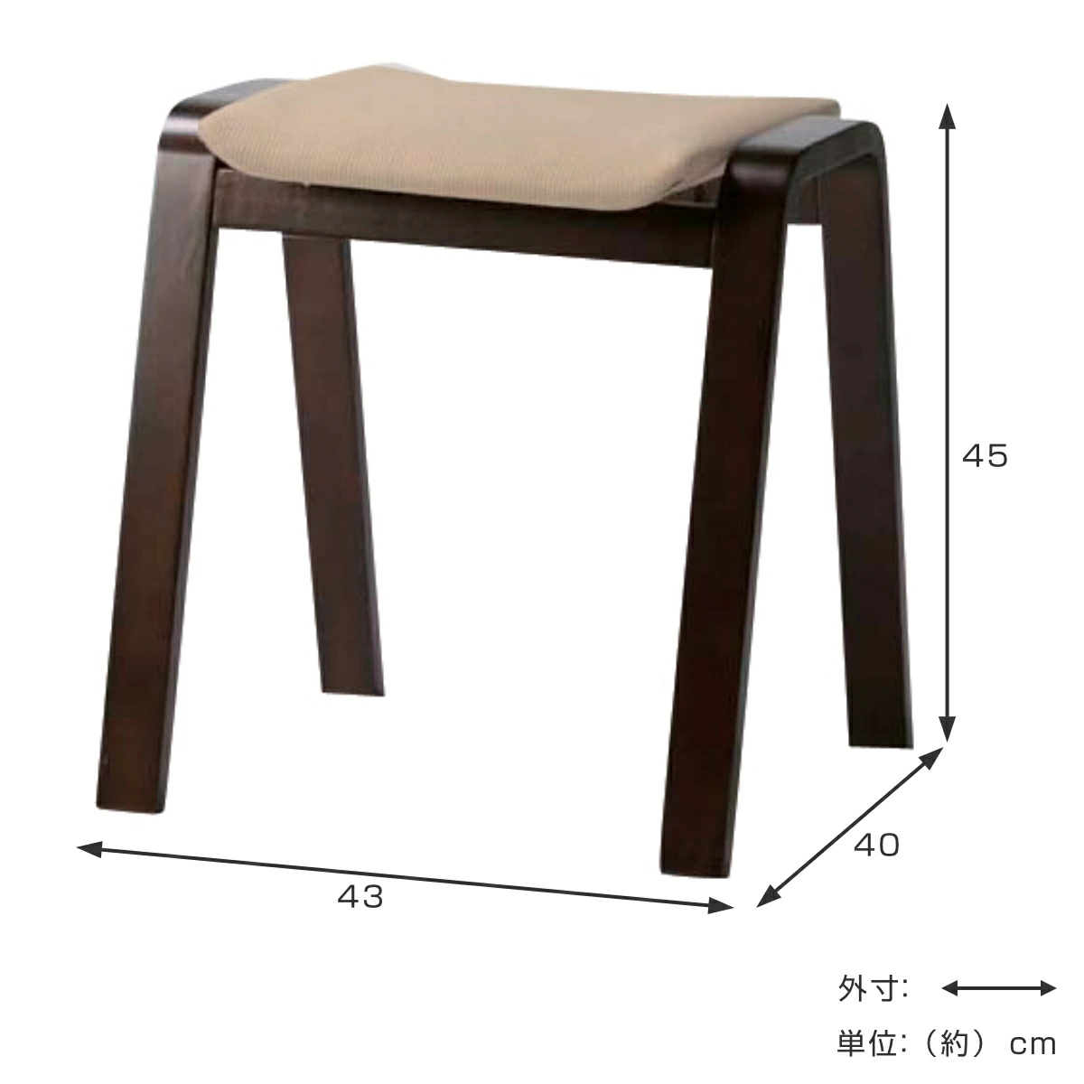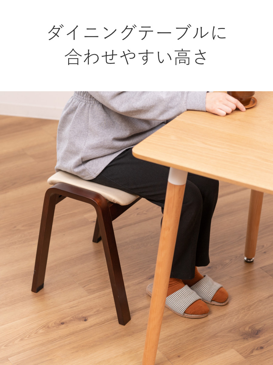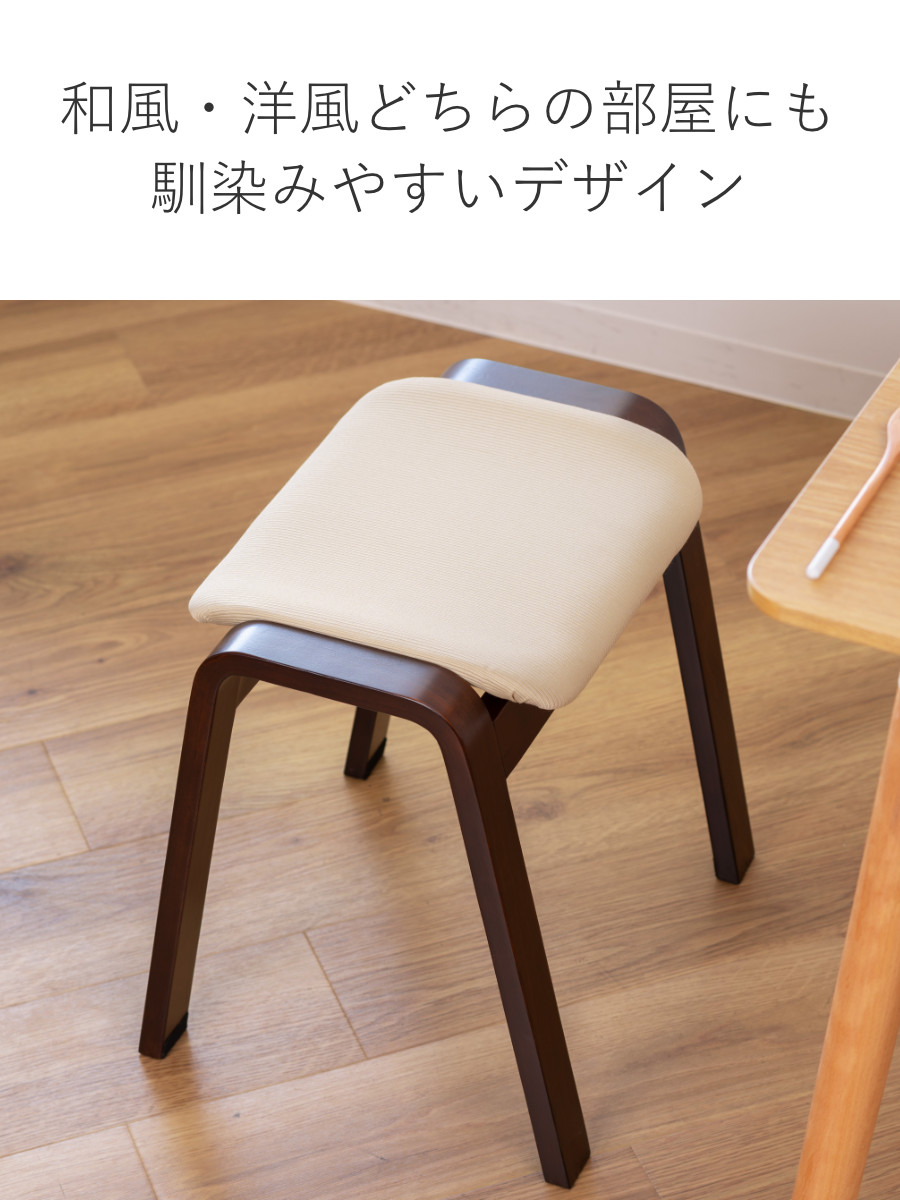 スツール 高さ45cm スタッキング ファブリック ( 木製 天然木 椅子 チェア 座敷 和モダン 背もたれなし 和室 玄関 ダイニング 簡易椅子 食卓 腰掛け 北欧 ビンテージ調 ヴィンテージ調 ブラウン ) 【ベージュ】