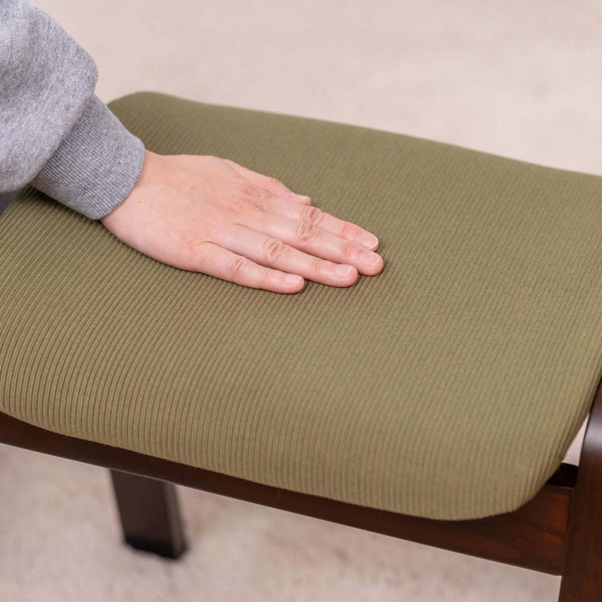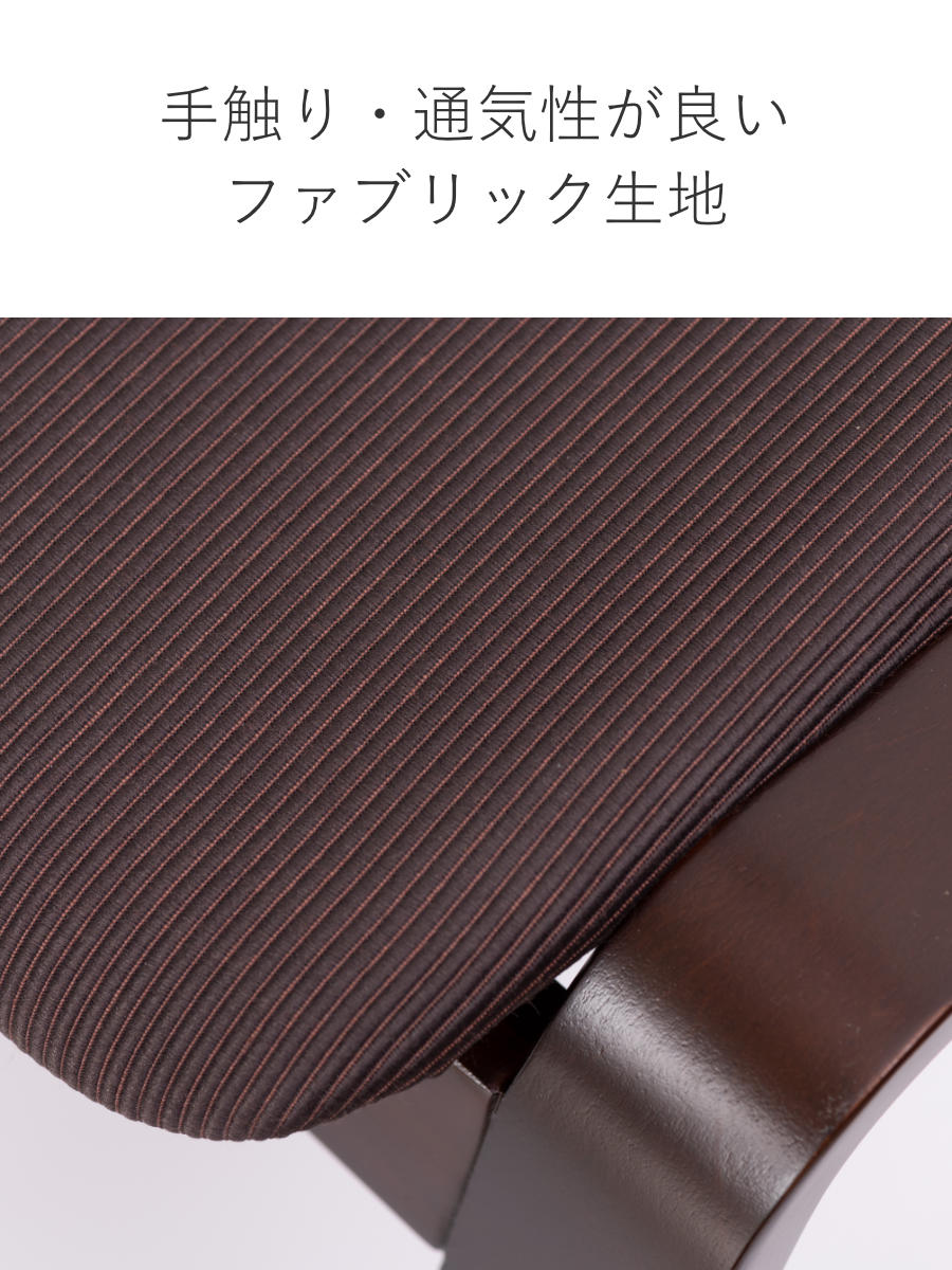 座面には手触りの良いファブリック生地を使用しています。通気性が良く、オールシーズン快適に過ごせます。