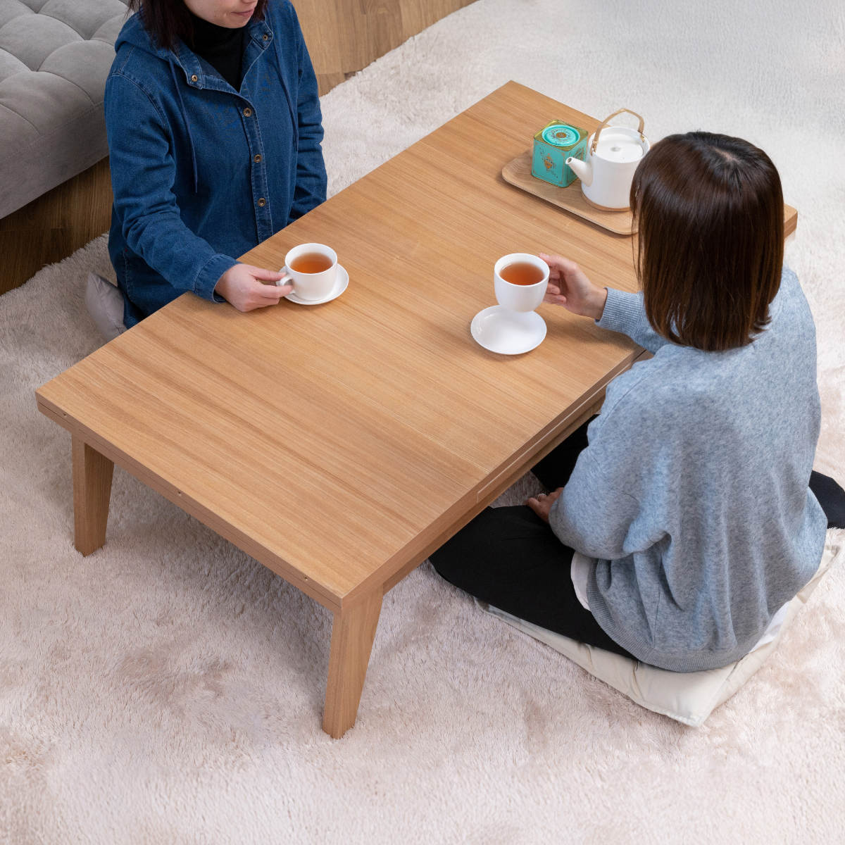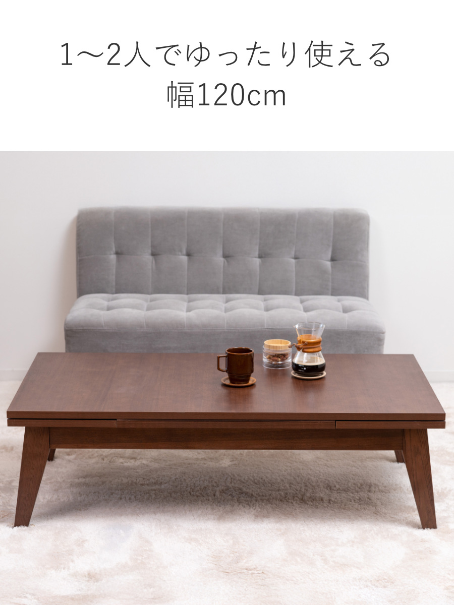 縮めて使う場合の幅は約120cmと、スペースが限られるお部屋でも圧迫感なく設置できます。1~2人で使うとゆったりと余裕を持って使えます。