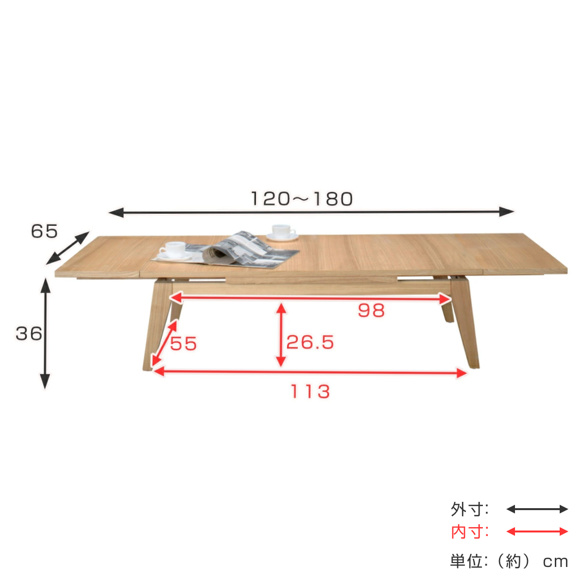 | サイズ | 約 幅120~180×奥行65×高さ36(cm) |