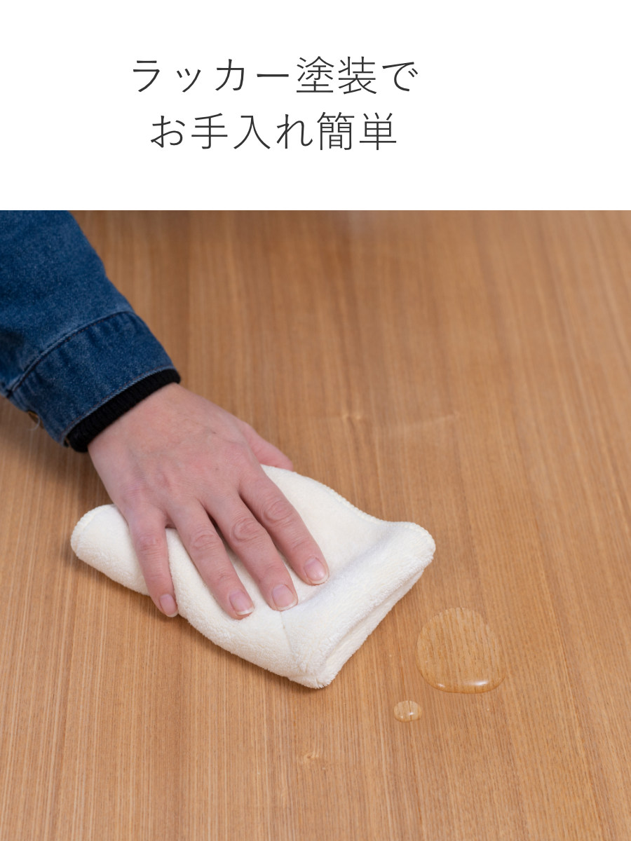 表面には水や傷に強いラッカー塗装が施されています。水などをこぼしてしまってもサッと拭き取るだけなのでお手入れがラクラクです。