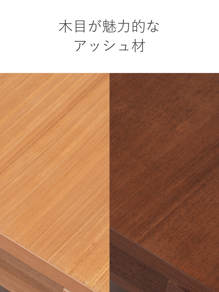 繊細な木目が美しいアッシュの突板を使用しています。お部屋があたたかくなるナチュラルと落ち着いた雰囲気になるブラウンの2色からお選びいただけます。