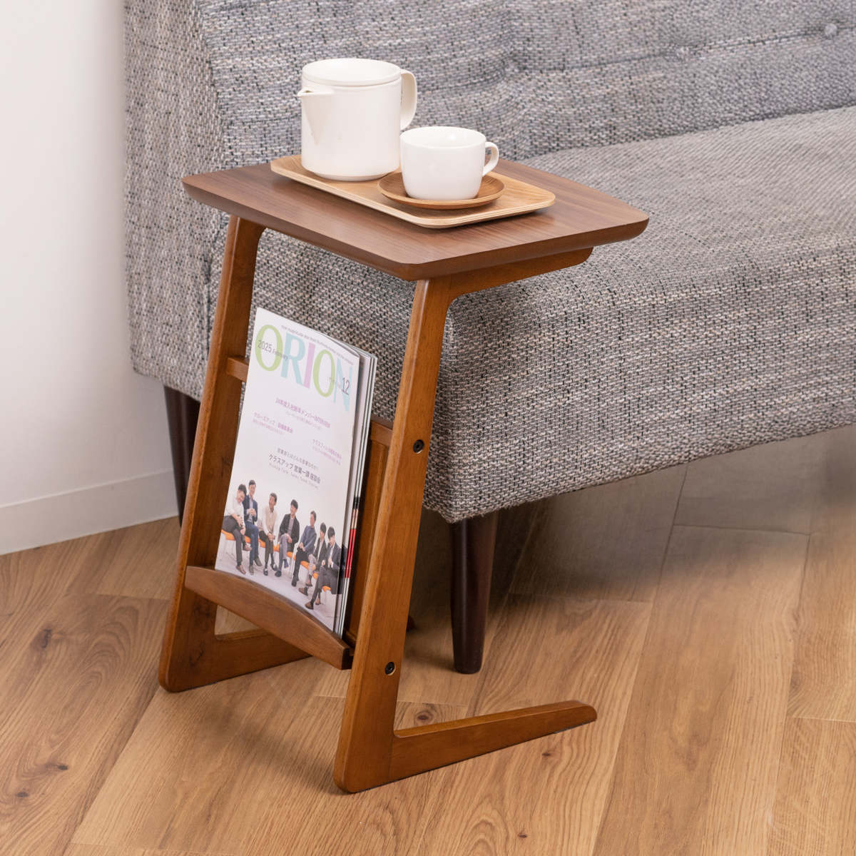 ソファサイドテーブル マガジンラック付 ( サイドテーブル トムテ 木製 天然木 PC パソコン 作業 テーブル 机 ナイトテーブル マガジンラック コの字 ベッドサイド 木目 おしゃれ 雑誌 新聞 収納 ミニテーブル )