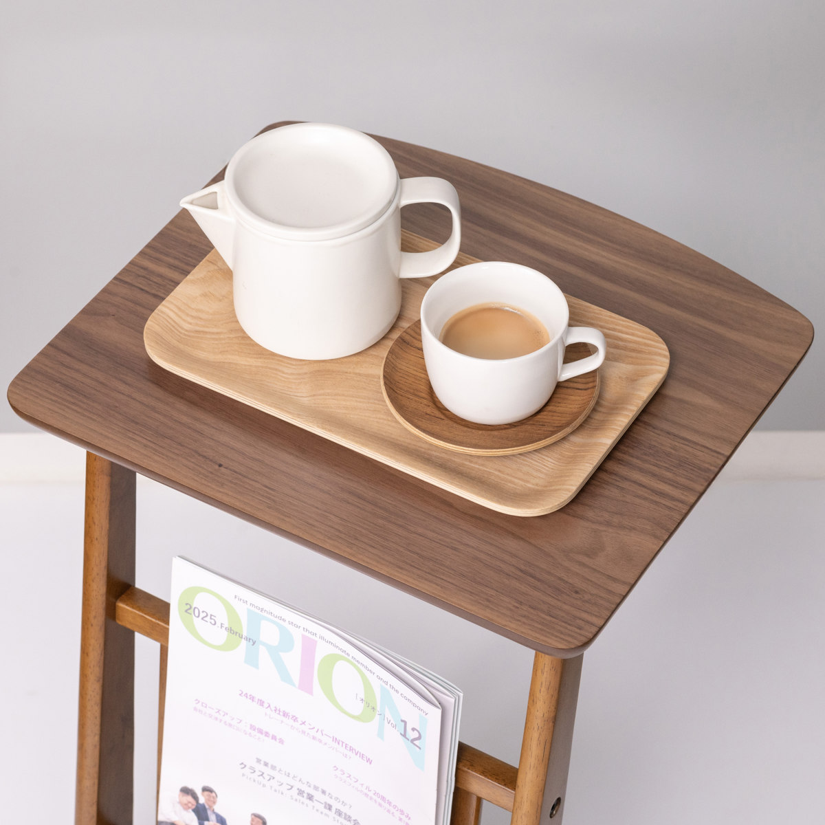 マガジンラックには、雑誌が2~3冊収納できます。お気に入りの雑誌を、見せる収納に。
