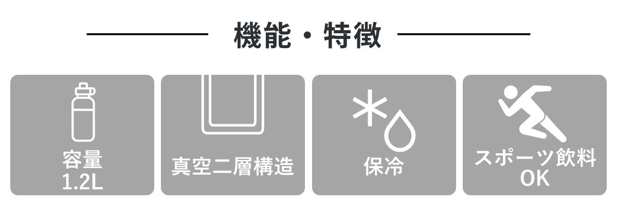 真空断熱構造による高い保冷力で、6時間後でも約7度以下をキープ!スポーツドリンクを入れてもOKなので、長時間のスポーツシーンにぴったり。子供から大人まで使いやすいシンプルなデザインです。