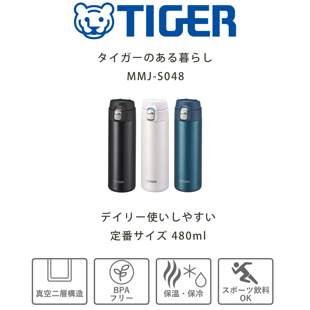 関連キーワード:TIGER すいとう ボトル スポーツ飲料OK スポーツドリンク対応 スポーツドリンクOK ダイレクトボトル ステンレス製 ワンタッチ ワンタッチタイプ ワンプッシュタイプ 軽い 超軽量 洗いやすい 通勤 通学 ウォーキング オフィス 散歩 ジム お出かけ アウトドア 旅行 レジャー 行楽 女性 レディース 男性 メンズ キッズ 男の子 男 男子 女の子 女 女子 シンプル 魔法瓶 ランチ 弁当 持ち運び ブラック ピンク ブルー ホワイト 黒 青 白 MMJ-S048AJ、MMJ-S048KJ、MMJ-S048PJ、MMJ-S048WJ