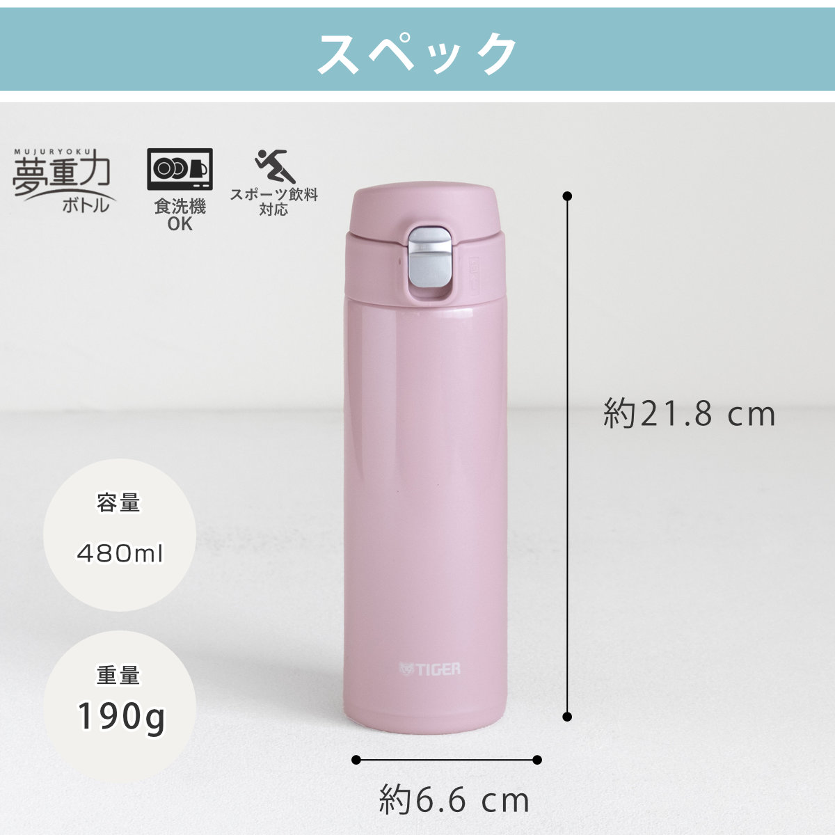 タイガー 水筒 480ml 真空断熱ボトル ワンプッシュマグ MMJ-S048 ( タイガー魔法瓶 マグ 直飲み 保温 保冷 食洗機対応 ロック 食洗機OK スポーツ飲料対応 直のみ ワンプッシュ マイボトル マグボトル ステンレスボトル 軽量 ) 【パールピンク】