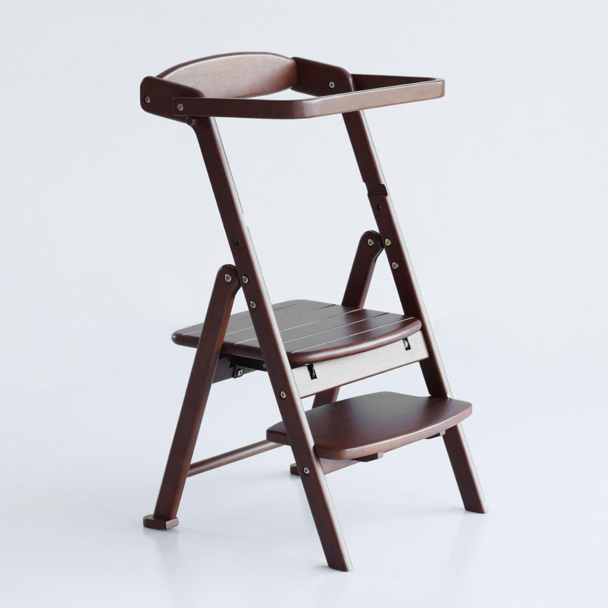 キッズチェア 折りたたみ キッチンアシスター ラーニングタワー ema ( 子ども キッズ チェア 木製 天然木 イス 椅子 ハイチェア ステップ 踏台 3WAY 転倒防止バー 滑り止め加工 安心 ダイニング ベビー 食事 手洗い 歯磨き ) 【ブラウン】
