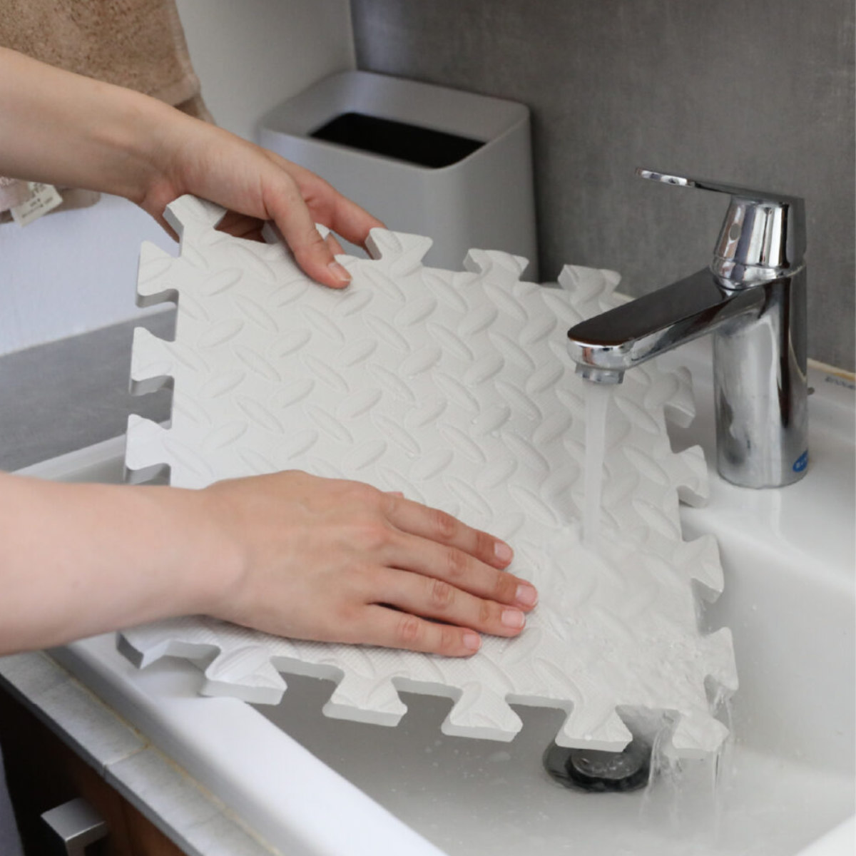 音や衝撃を和らげるため、お子様のプレイスペースやペット用マットとしても安心です。やさしいクッションで床面をしっかり保護します。
