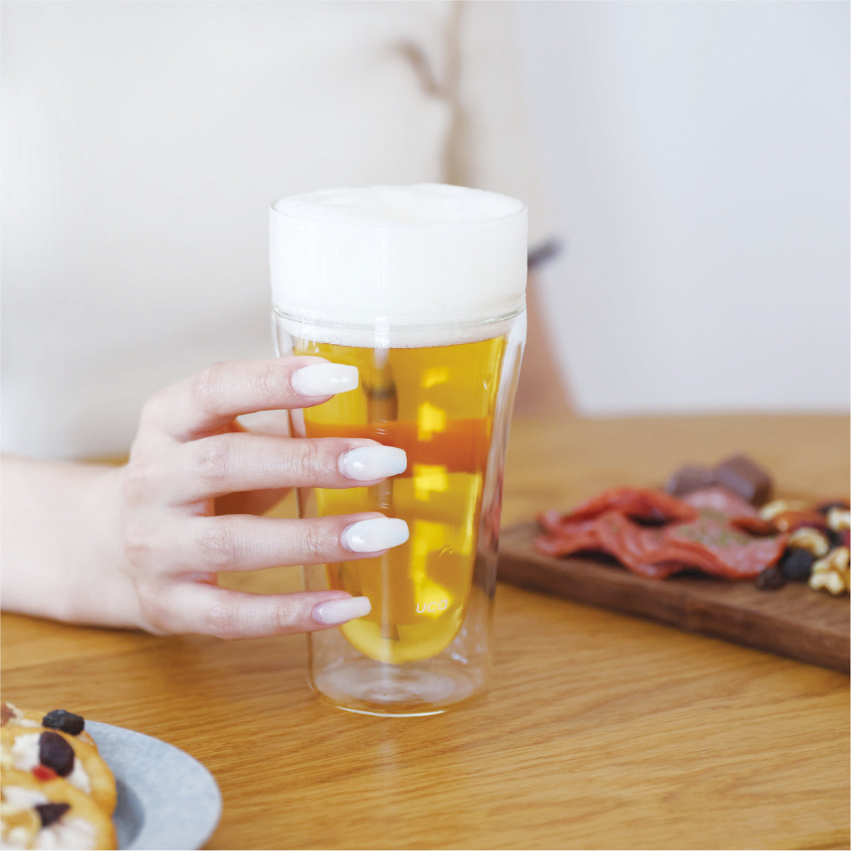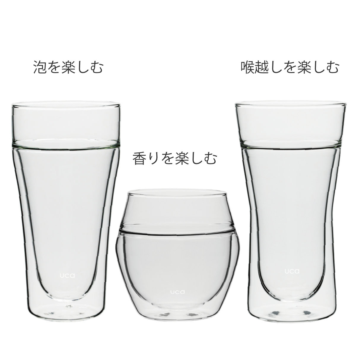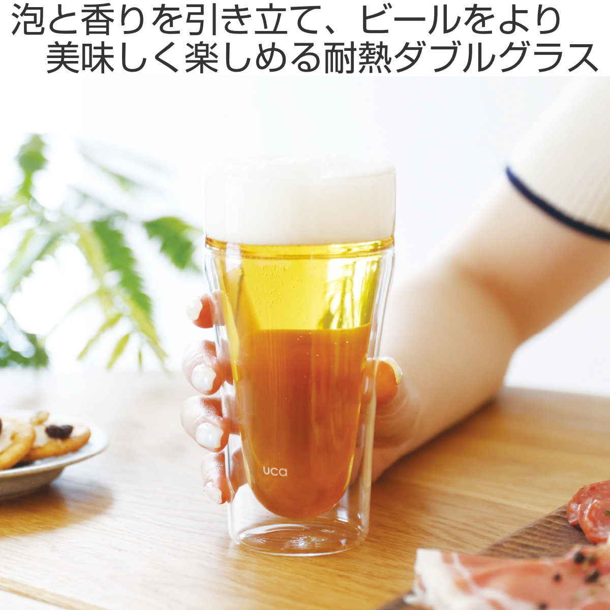 ビールの美味しさを最大限に味わえるよう設計された泡を楽しむ 耐熱ダブルグラスです。泡持ちがよく香りを逃しにくい形状で、クリーミーな泡と心地よい飲み口を存分に楽しめます。