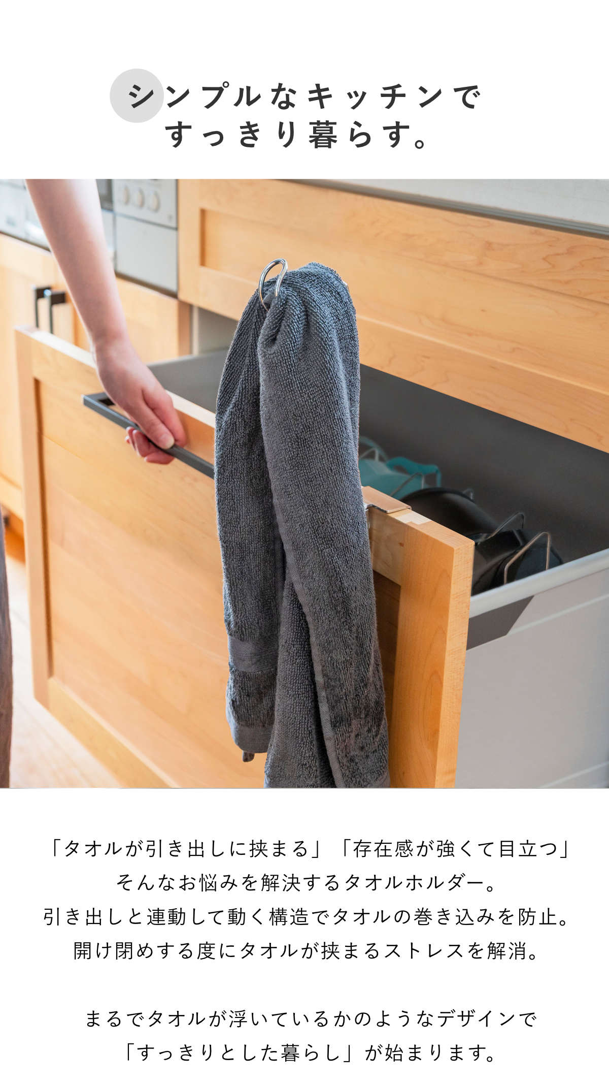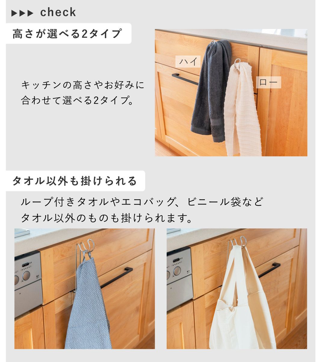 タオル掛け ビーワーススタイル すっきり暮らす 浮いてみえる タオルホルダー ハイタイプ ( タオルハンガー ステンレス 日本製 コンパクト ホルダー 袋掛け ふきん掛け キッチン収納 引掛け 引出し 扉 取付け )