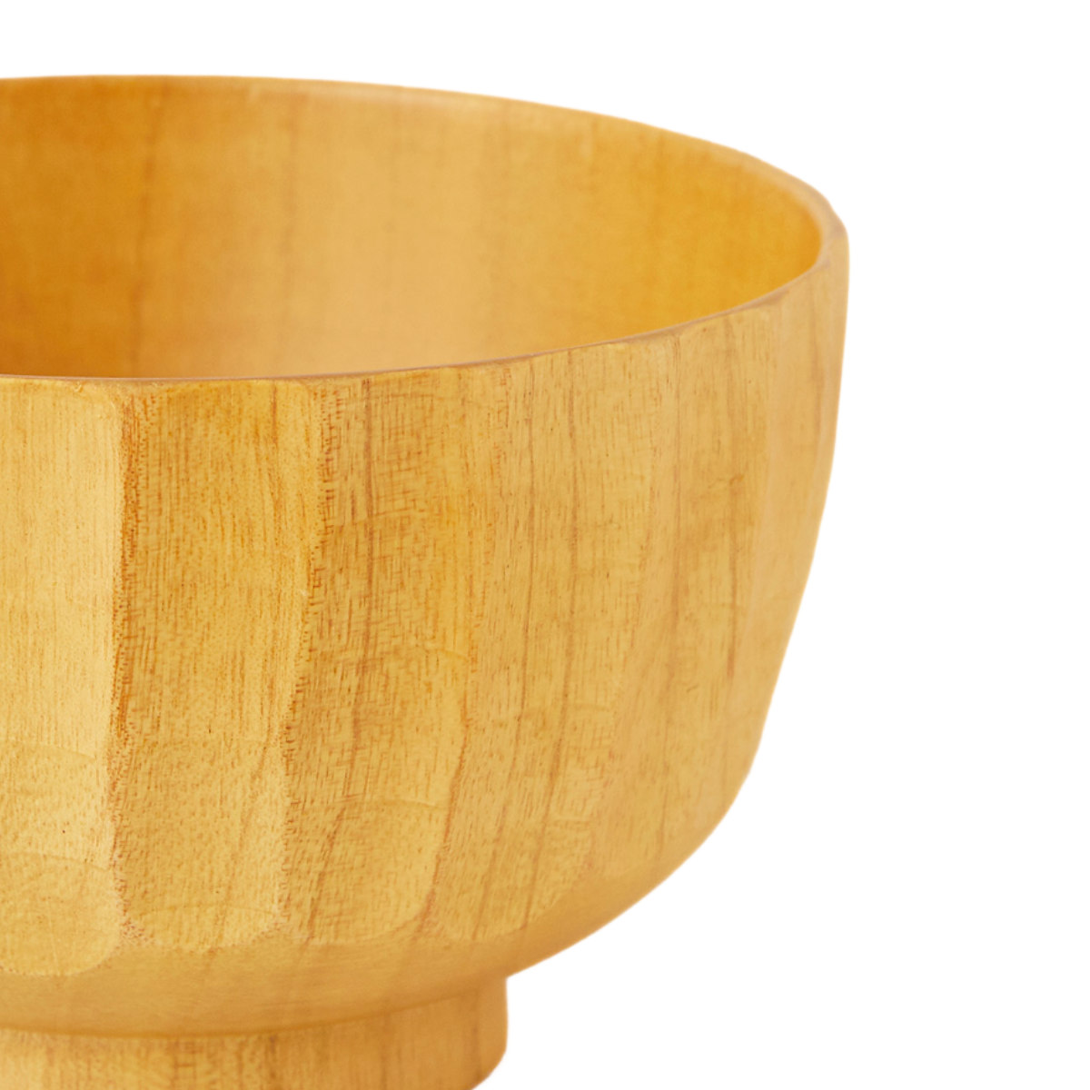 全周に縦に手で彫ったラインが入っている、手になじみやすいお椀です。和を感じさせるデザインで普段使いはもちろん、おもてなしの際にもおすすめの木製食器です。職人が一つ一つ轆轤でくり抜いて仕上げた、手仕事のぬくもりが伝わる逸品です。