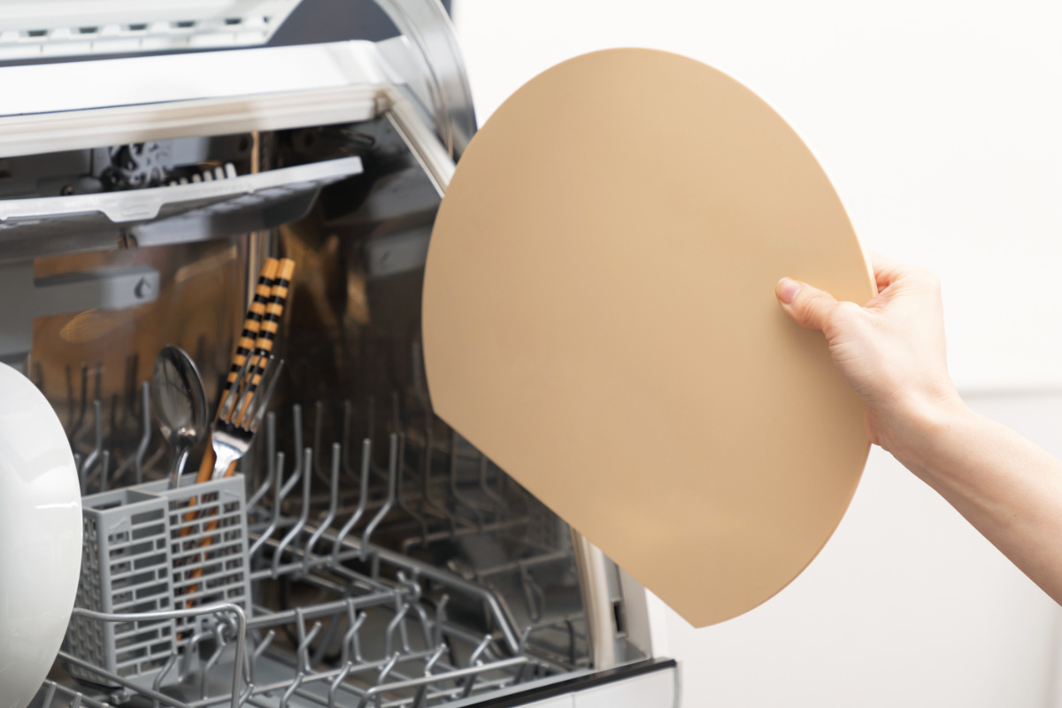 ・反り防止のため、本品を曲げたまま食洗機庫内に入れないでください。反ってしまったときは、熱湯を掛けて水平な場所に置くと反りが軽減されます。