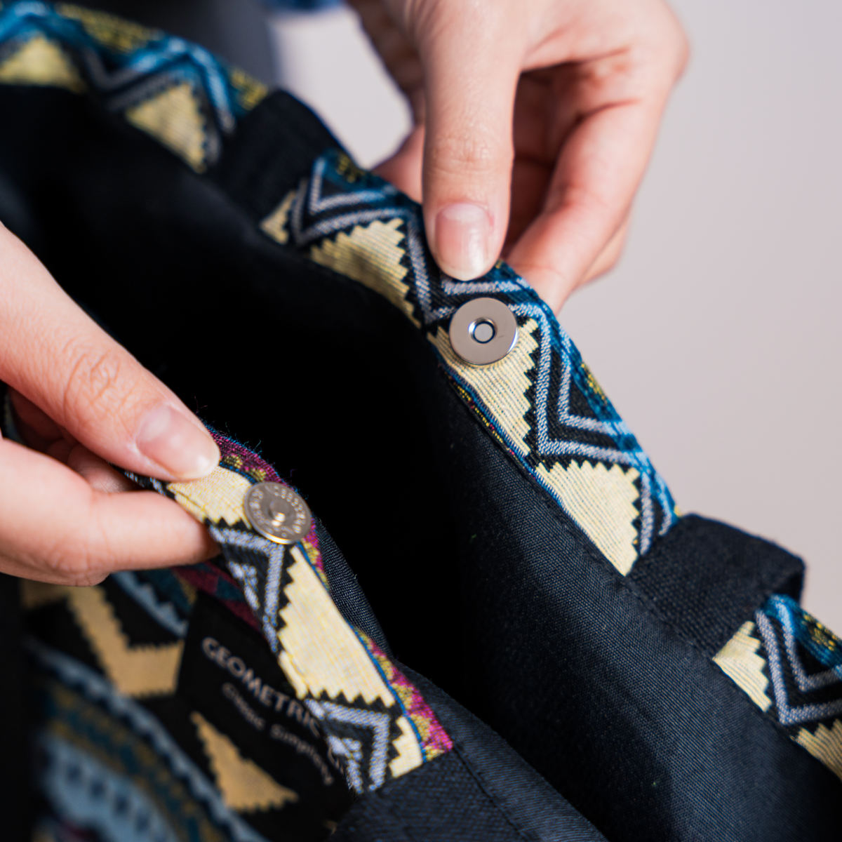 トートバッグ 幾何学柄 オシャレ 軽量 通勤 通学 ( トート 手提げバッグ 留め具付き マグネット かばん 鞄 肩掛け 布製 洗える レディース メンズ 大人 かわいい 柄 おしゃれ プレゼント 雑貨 買い物 ) 【カラフル】