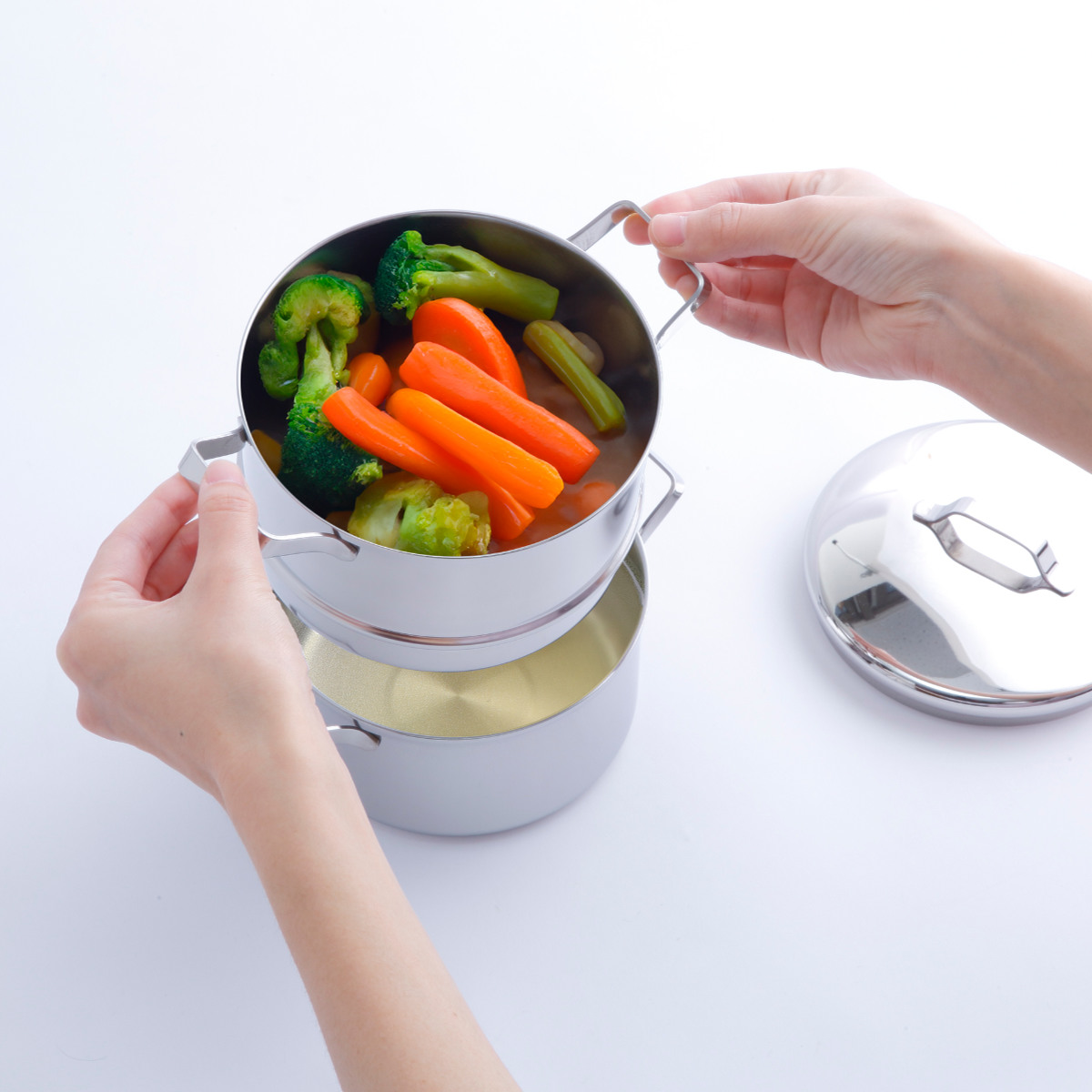下鍋は単体で両手鍋としてもお使いいただけます。下鍋にも蓋が使用できるので、煮込み料理などの調理にも活躍します。