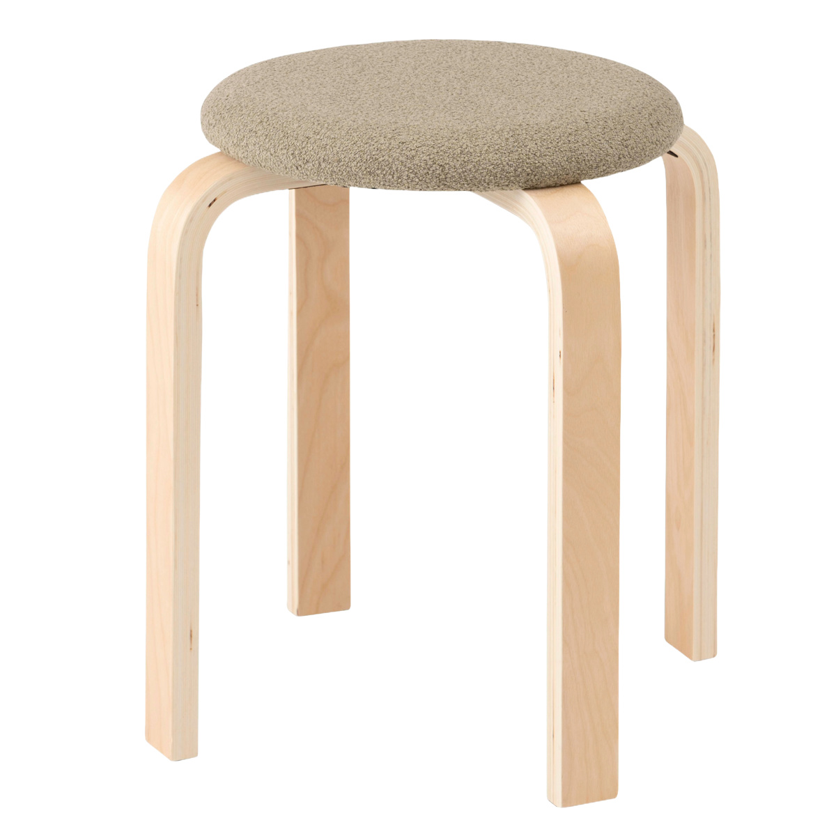 ナチュラルな空間にそっと寄り添う、丸みのあるデザインが魅力のスツールです。天然木のあたたかさと、ニュアンスカラーの落ち着いたファブリック座面が、インテリアにやさしい印象をプラスしてくれます。