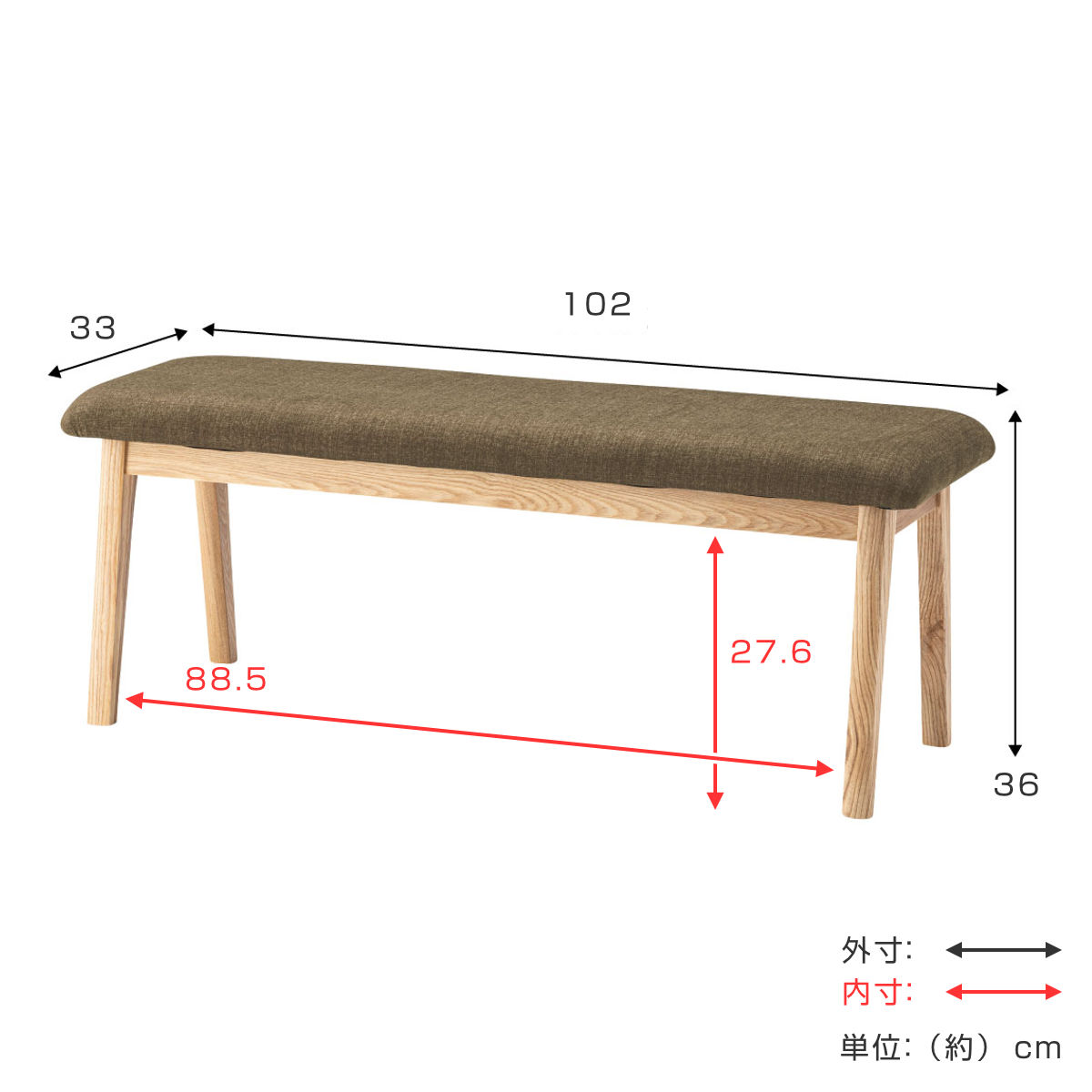 ダイニングベンチ 幅102cm モタ 木製 完成品 ( ダイニング ベンチ イス 椅子 食卓椅子 天然木 背もたれなし スツール 長椅子 ダイニングチェア 座面 広め 食卓ベンチ ファブリック チェアー 食卓 リビング 木製椅子 リビングチェア )
