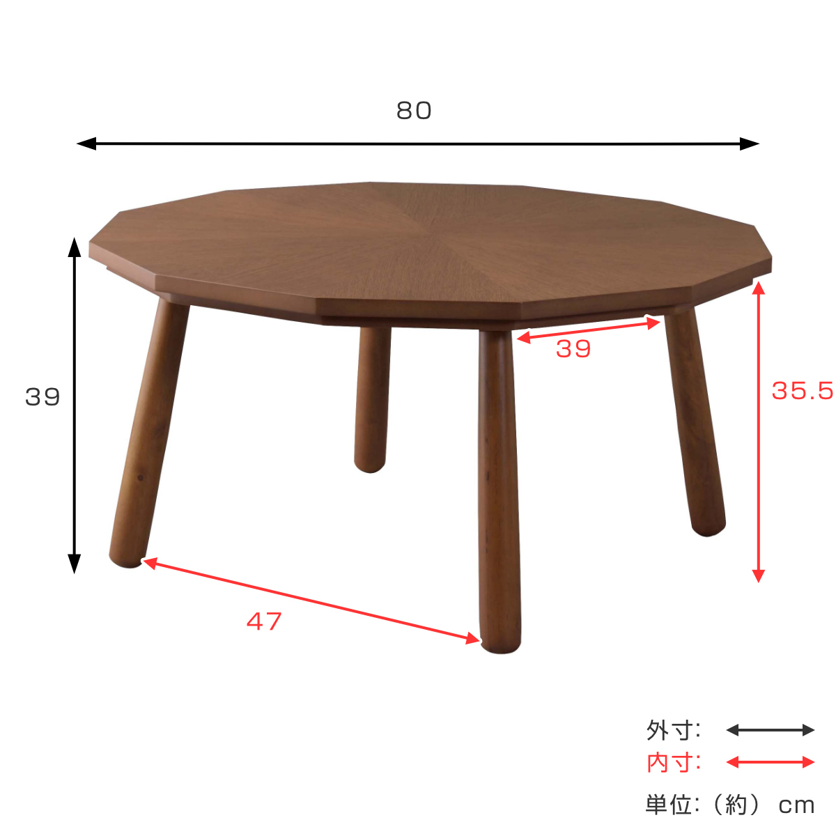 こたつテーブル 直径80cm 円形 12角形 木製 ( こたつ テーブル リビングテーブル ローテーブル 天然木 薄型ヒーター リビング 1年中 使える 座卓 おしゃれ スタイリッシュ 石英管ヒーター )