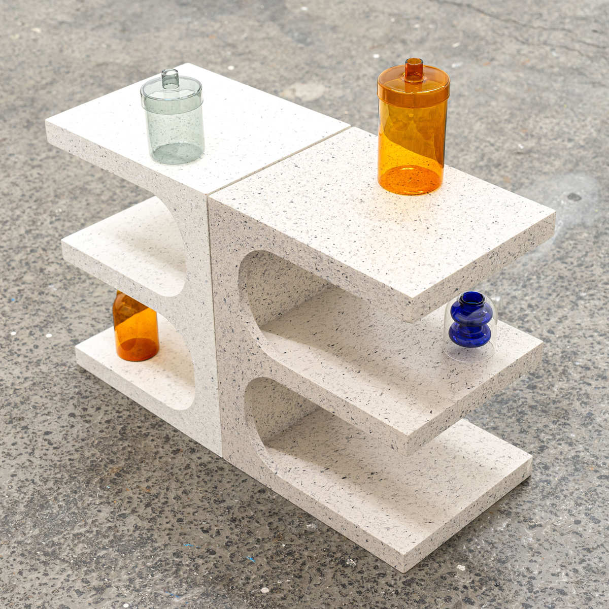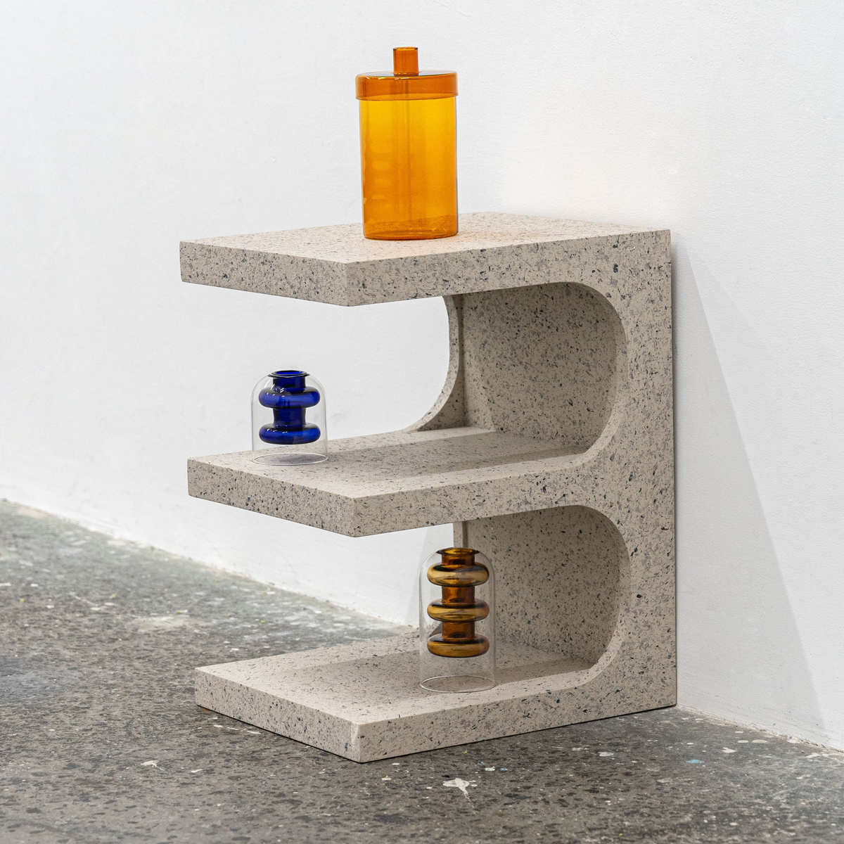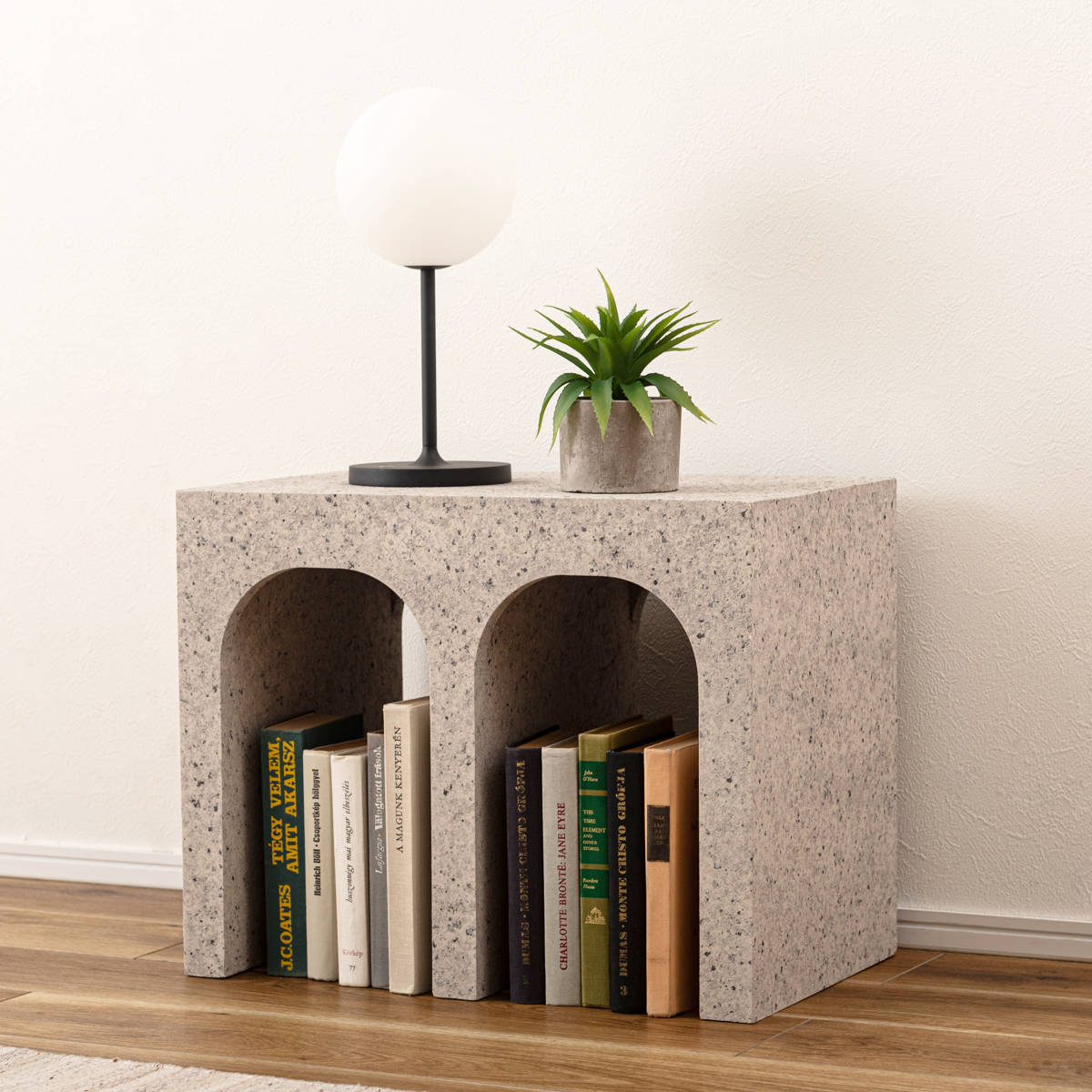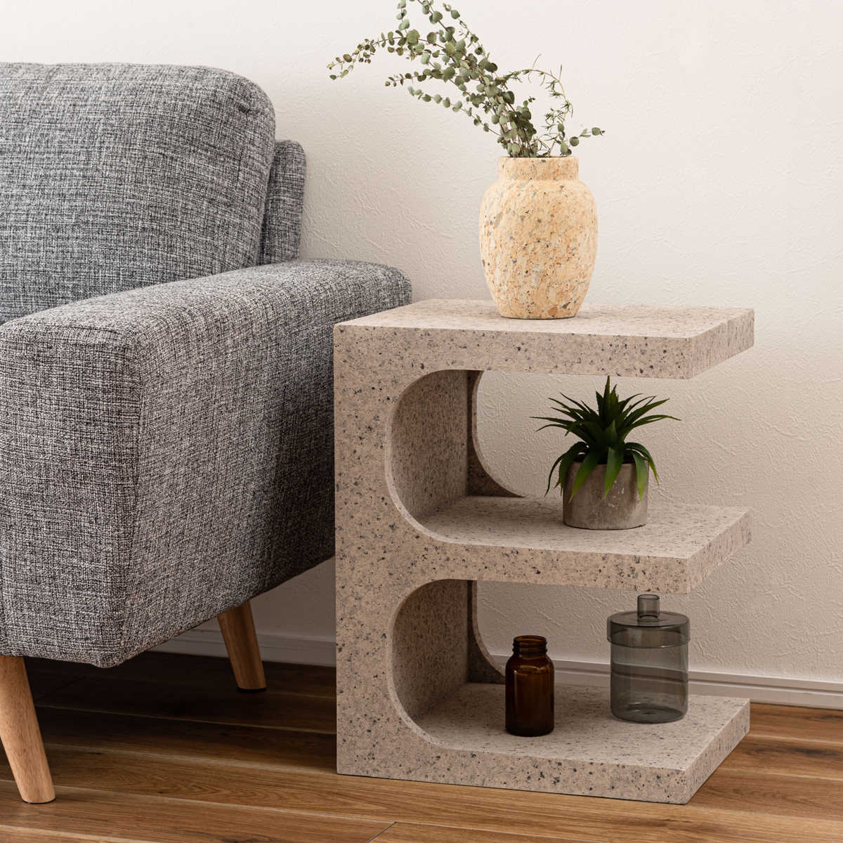 サイドテーブル 高さ50cm テラゾー柄 おしゃれ ( ミニテーブル テーブル 縦置き 横置き オブジェ ソファサイド ベッドサイド ナイトテーブル コーヒーテーブル カフェテーブル ベッドテーブル ディスプレイラック 石目調 ) 【グレー】