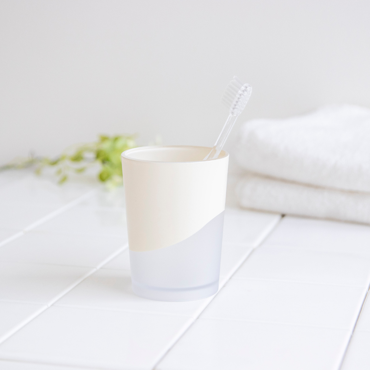 毎日のうがいや歯みがきにちょうどいい歯ブラシコップです。無駄のないシンプルなフォルムにやわらかなカラーを組み合わせたデザインで、空間をすっきりと上品に演出します。主張しすぎない色合いは清潔感のある空間になじみやすく、毎日のうがい・歯みがきを心地よくサポートします。