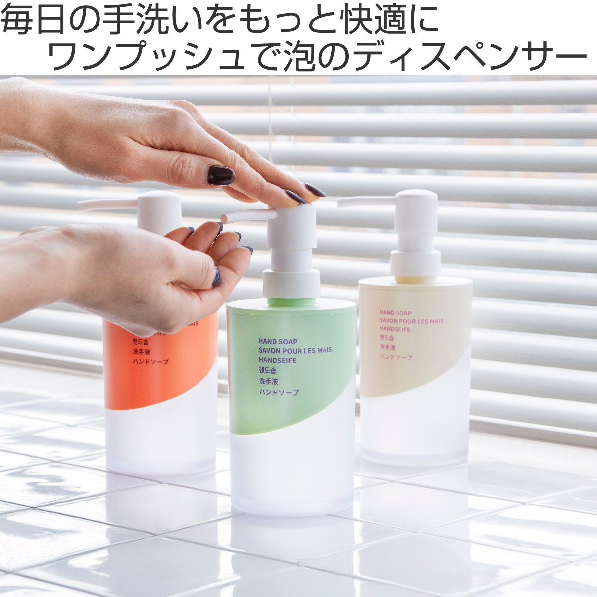 関連キーワード:ポンプボトル 詰替え せっけん 手洗い洗剤 泡 洗面所 洗面台 トイレ サニタリー 水周り シンク横 風呂 ふろ バスグッズ お風呂用品 お風呂グッズ 洗面グッズ 洗面スペース 宿泊施設 ホテル 共有スペース インテリア 雑貨 人気 おすすめ オススメ 便利 便利グッズ 日常使い 引越し祝い 引っ越し祝い プチギフト ギフト プレゼント 贈り物 お返し 返礼 オシャレ お洒落 おしゃれ カワイイ 可愛い かわいい ほわいと 白 しろ おれんじ ぐりーん 緑 みどり