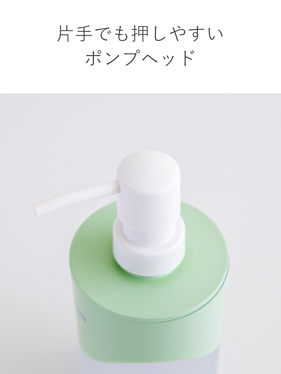程よい力で押せるポンプヘッドを採用しています。片手でも押しやすく、忙しい場面でも快適に操作できます。毎日使うものだからこそ、心地よい使い心地にこだわりました。