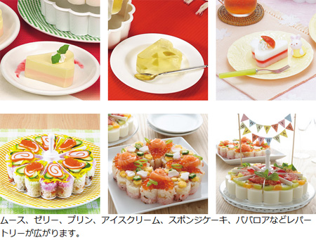 ケーキの他にムース、ゼリー、プリン、アイスクリーム、ちらし寿司なども作ることができます。誕生日パーティーやひな祭りのご馳走作りにもぴったりです。