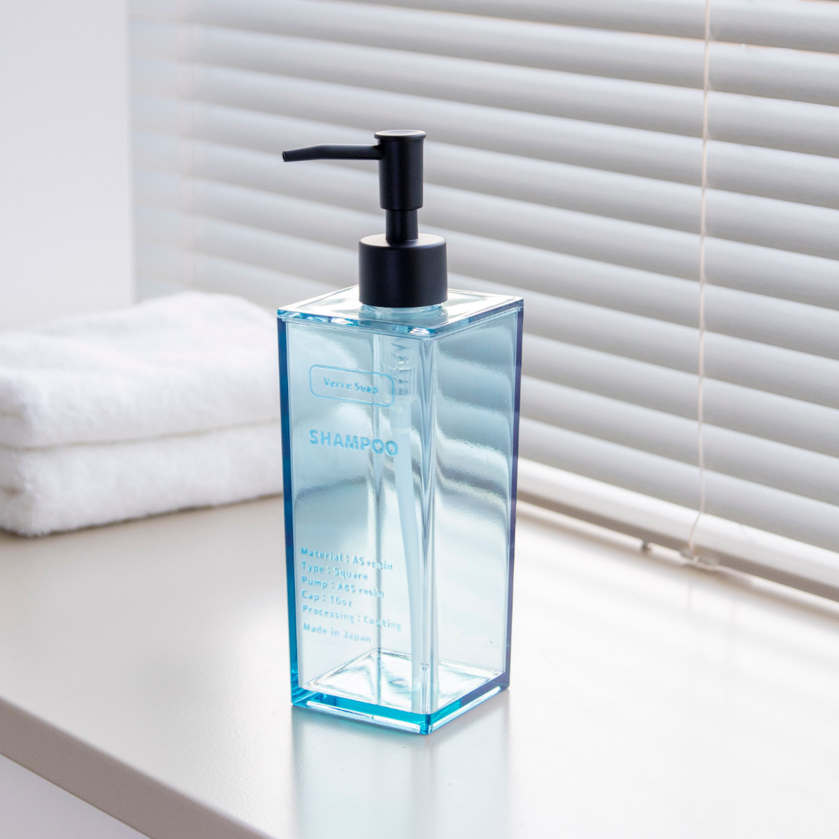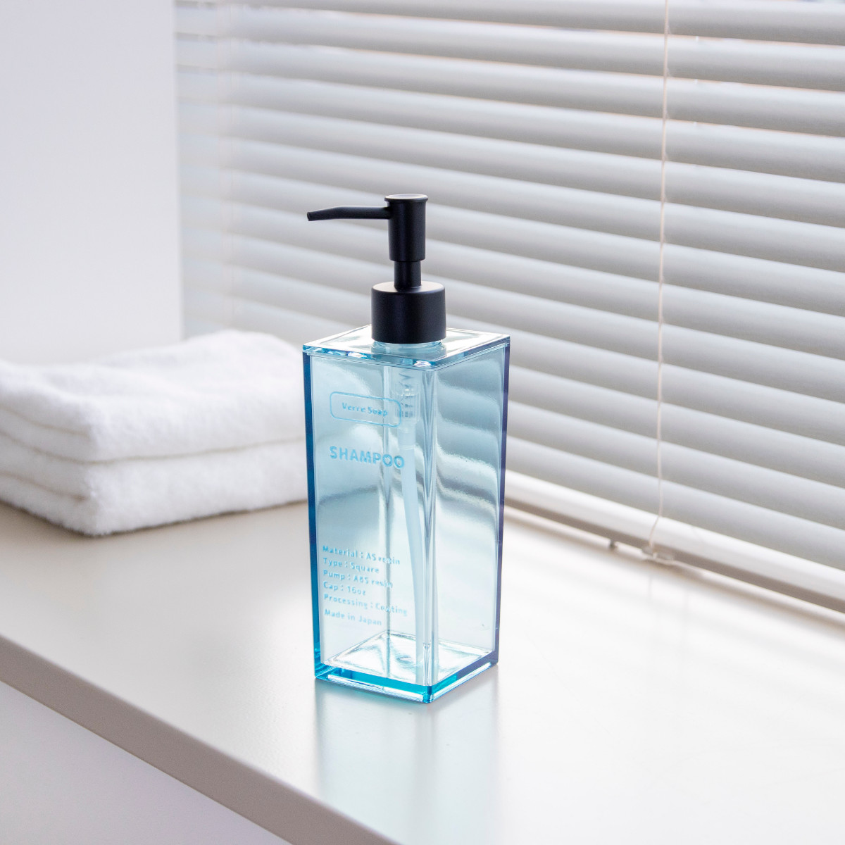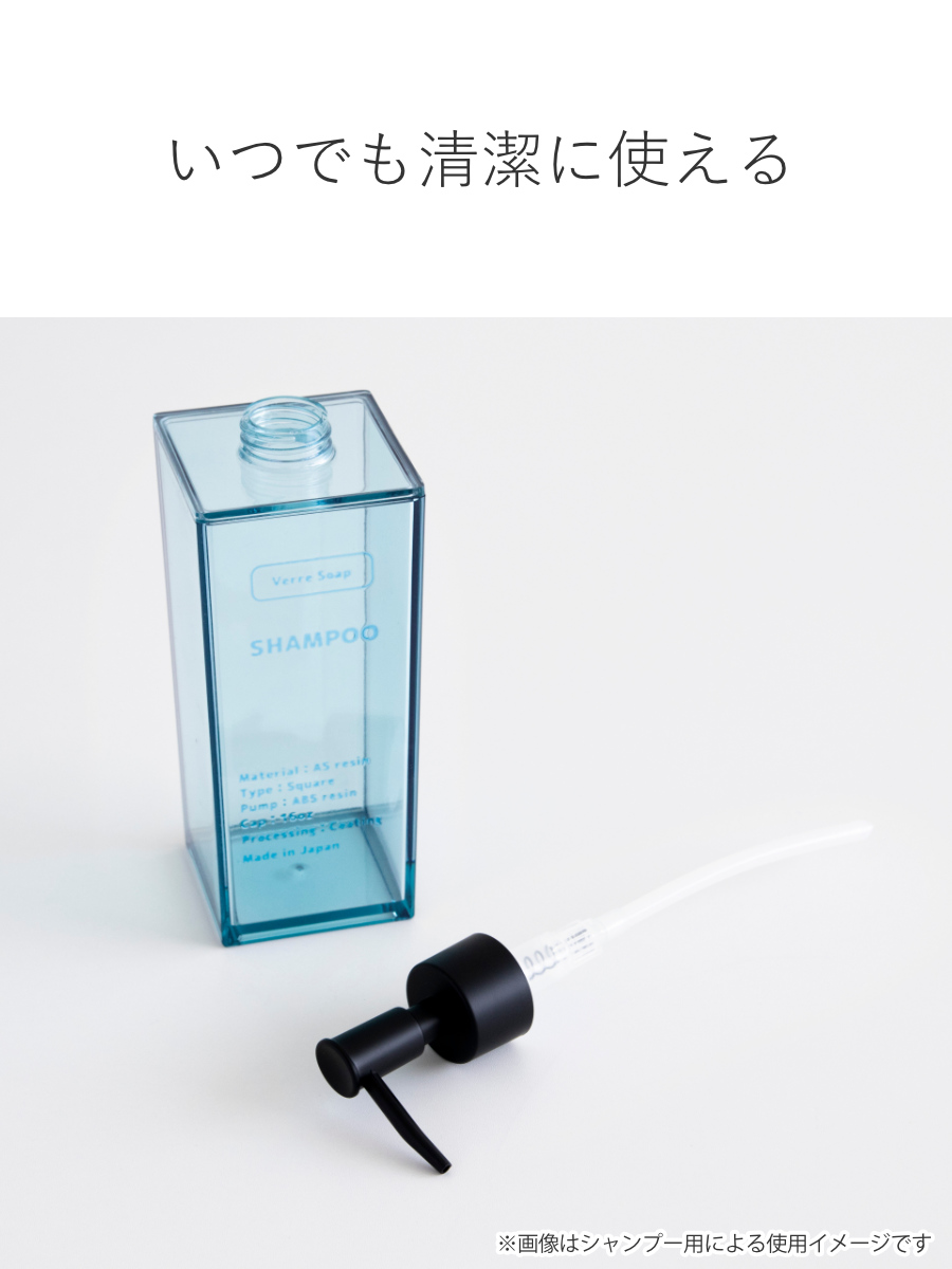 ディスペンサー 500ml シャンプー Verre Soap ( ディスペンサーボトル 液体タイプ 液体用 詰め替えボトル 詰め替え おしゃれ ソープディスペンサー シャンプーボトル 詰め替え容器 バス用品 ) 【ブルー】
