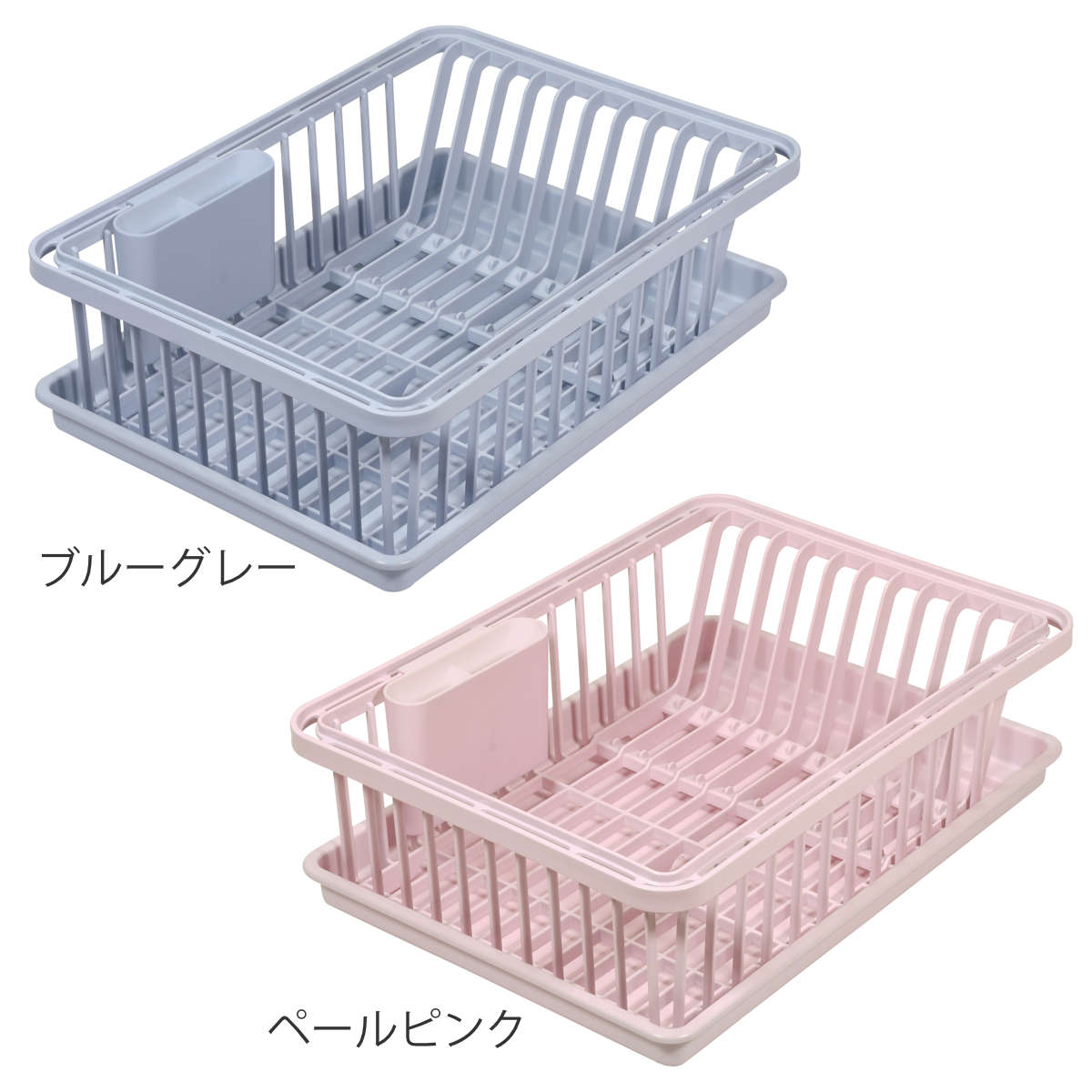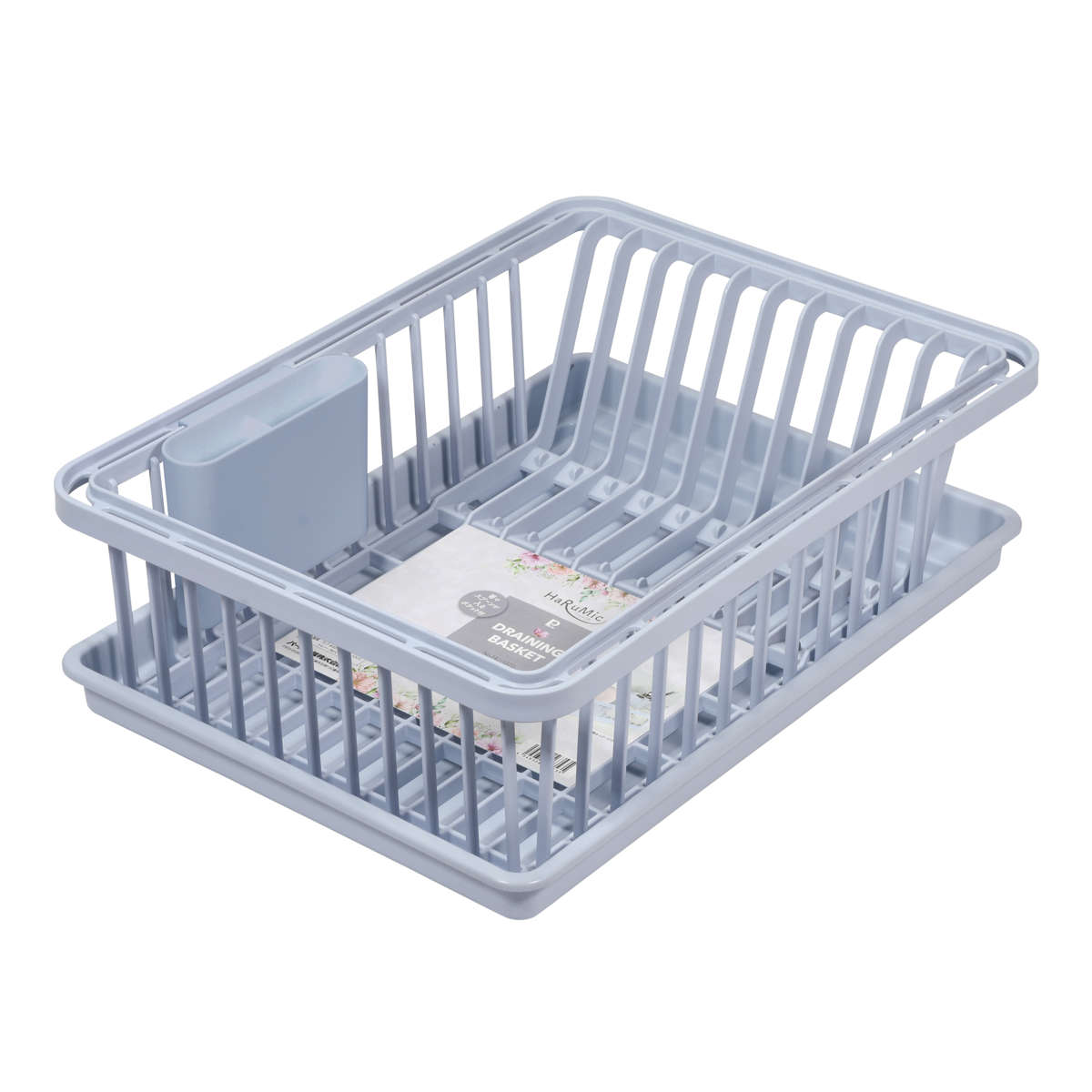 水切りラック ハルミック 水切りカゴ ( 日本製 プラスチック 水切りバスケット 1段 水切り籠 水切り かご カトラリーポケット 洗い物 食器洗い 食器 乾燥 大容量 キッチン用品 ) 【ブルーグレー】