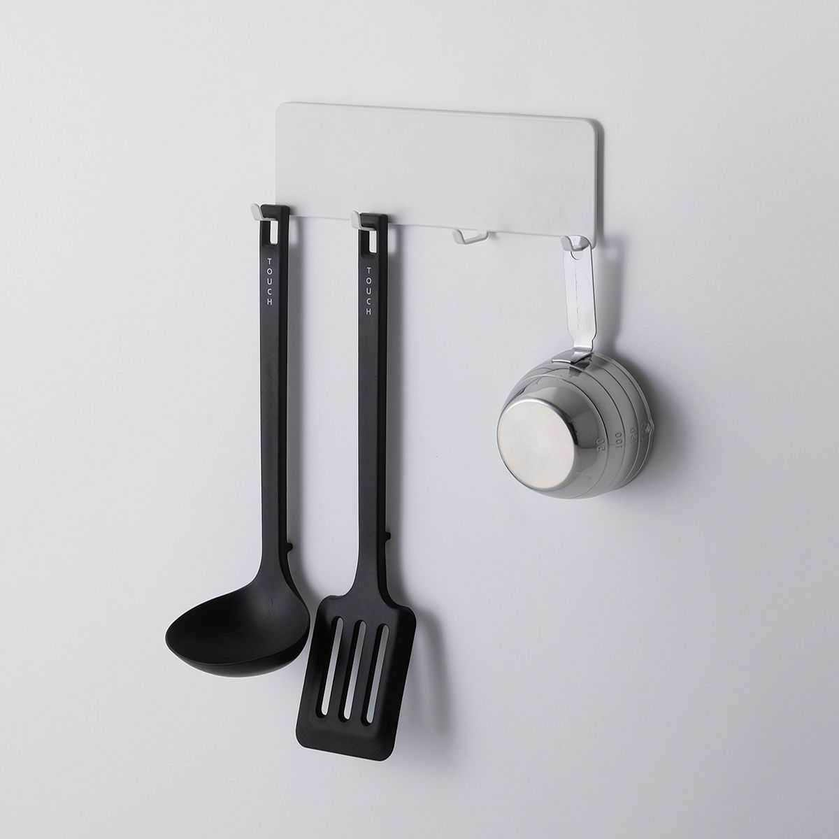 ●同シリーズのキッチンパネルや冷蔵庫などに貼りつければ、お玉や調理小物を浮かせて収納できます。