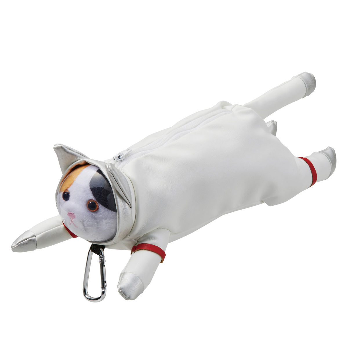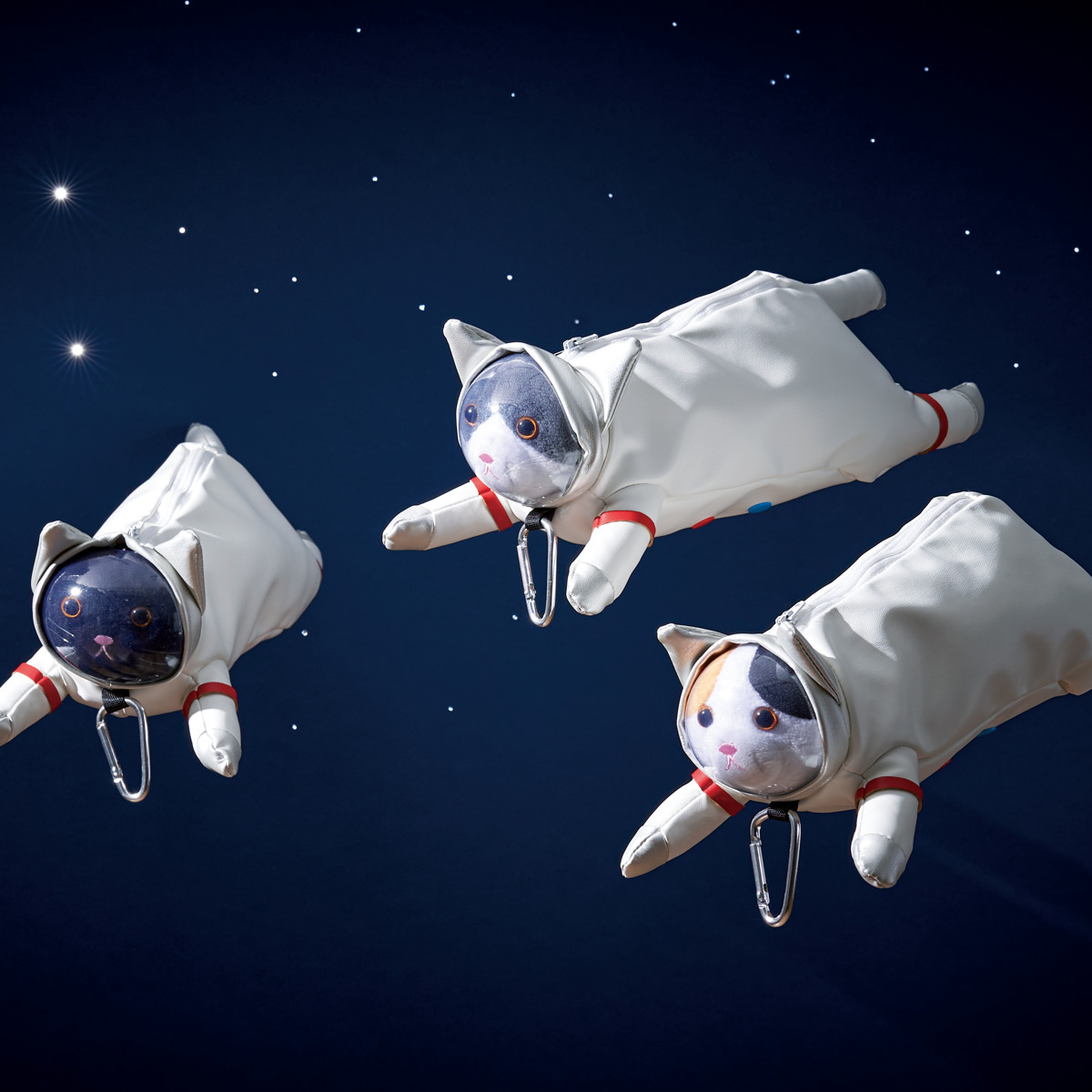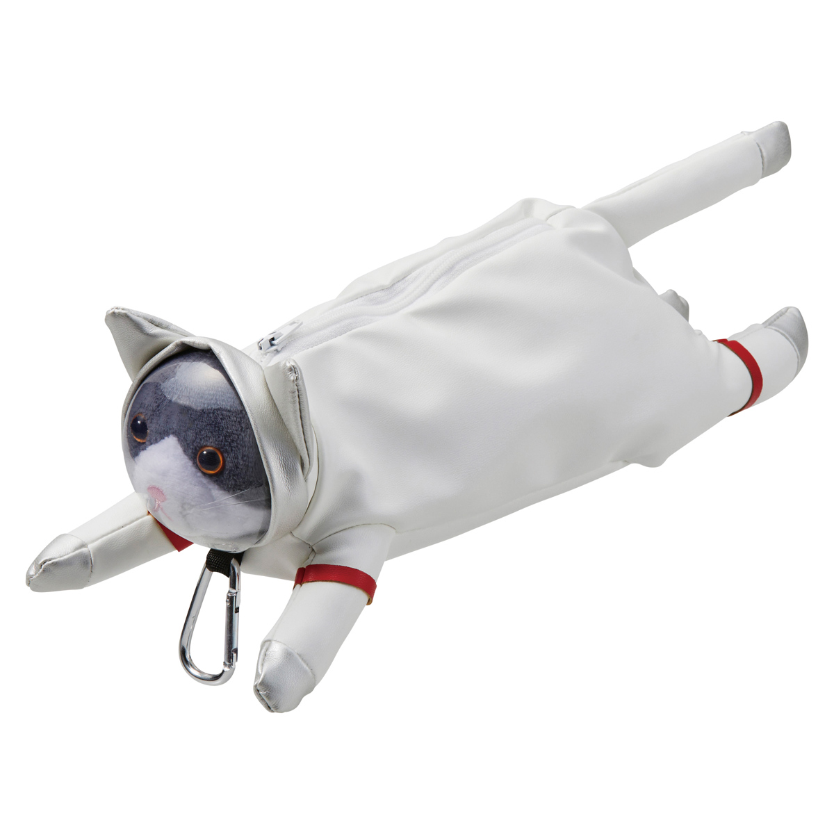 宇宙服を着た猫のペンケースです。ぬいぐるみのような見た目は見るだけで癒されます。猫が宇宙服を着たユニークなデザインがポイント。猫好きな方や、個性的な雑貨をお探しの方におすすめです。