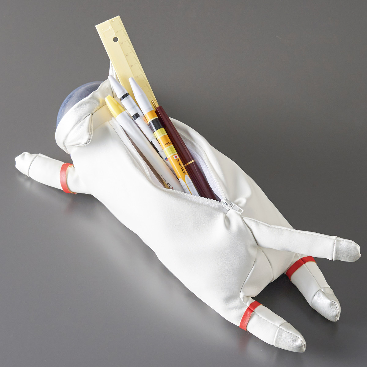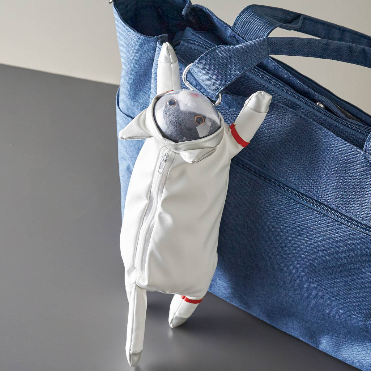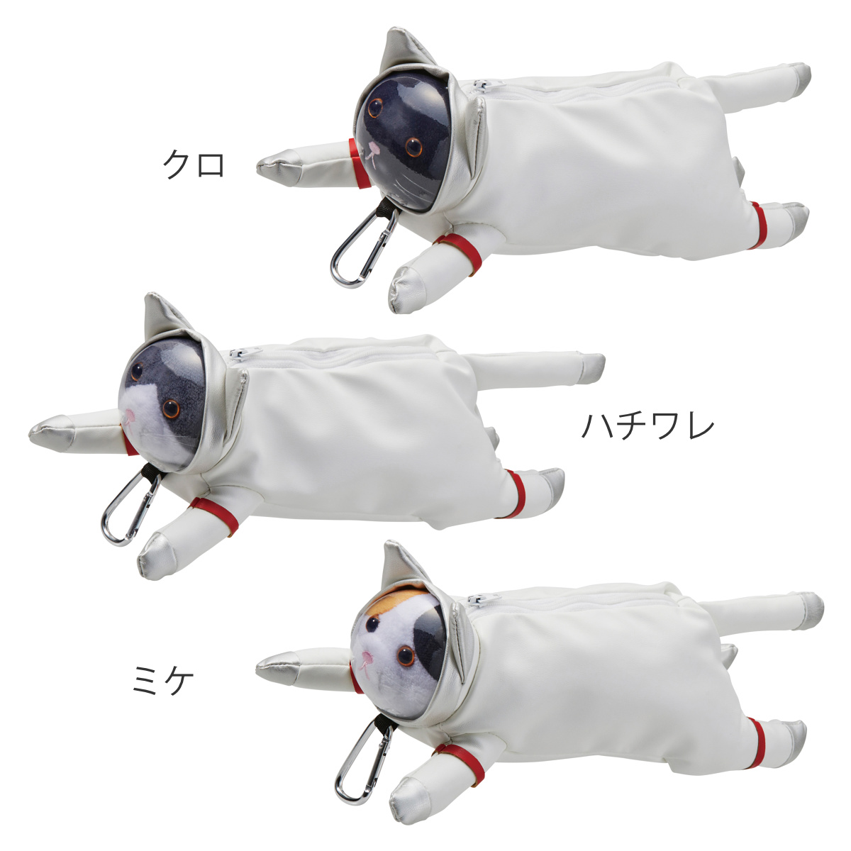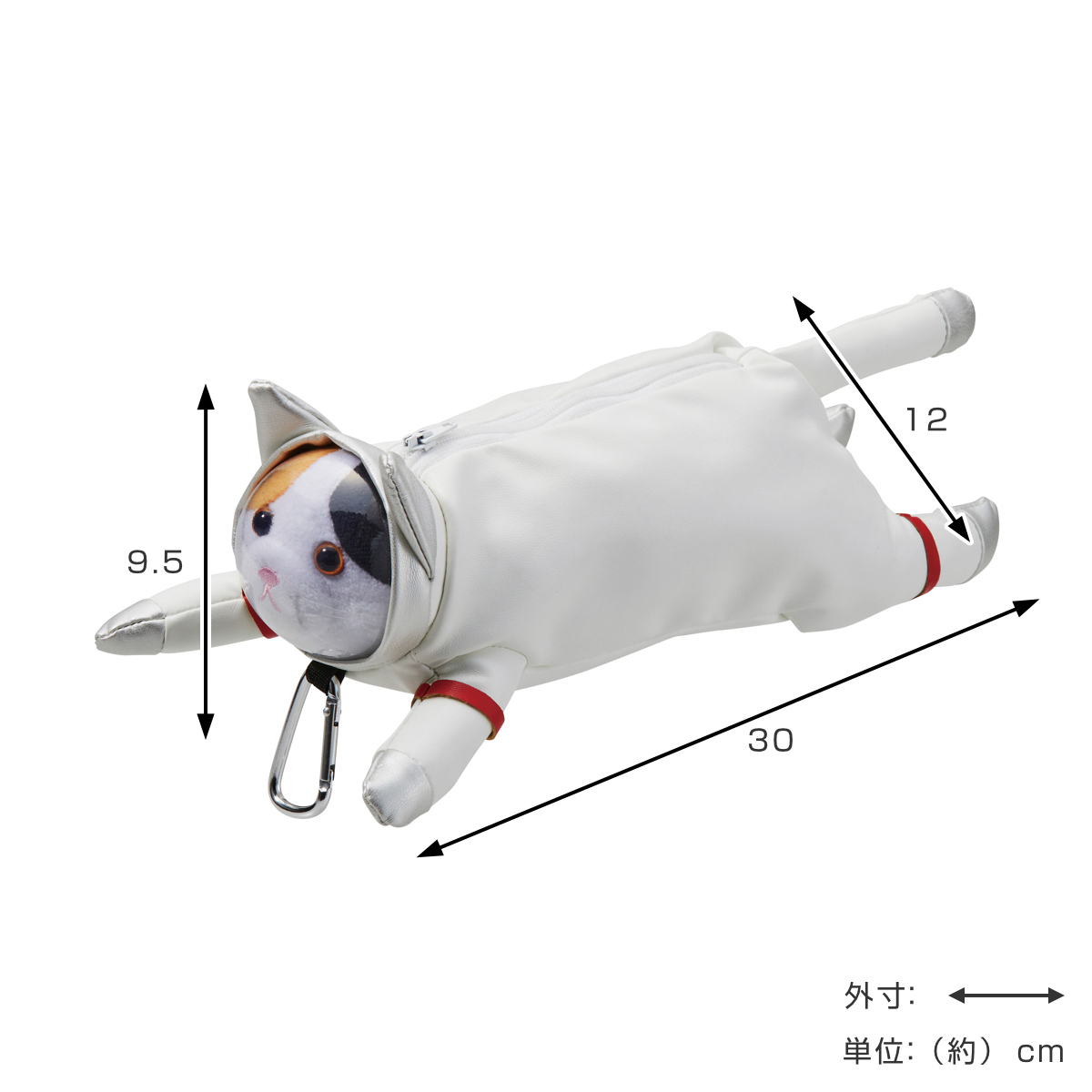 宇宙服を着た猫のペンケースです。ぬいぐるみのような見た目は見るだけで癒されます。猫が宇宙服を着たユニークなデザインがポイント。猫好きな方や、個性的な雑貨をお探しの方におすすめです。