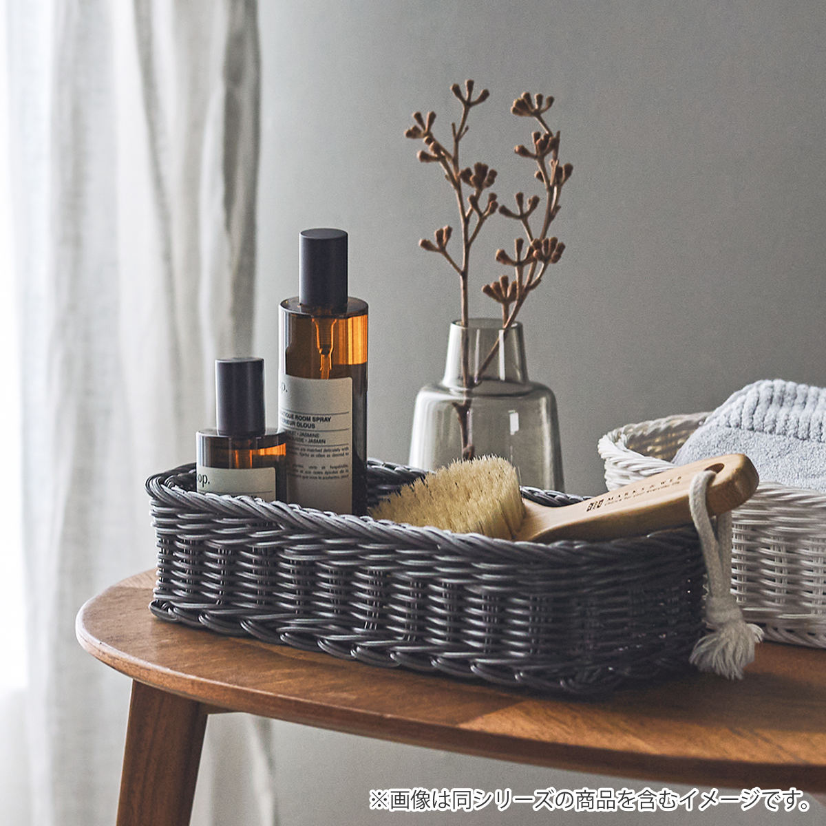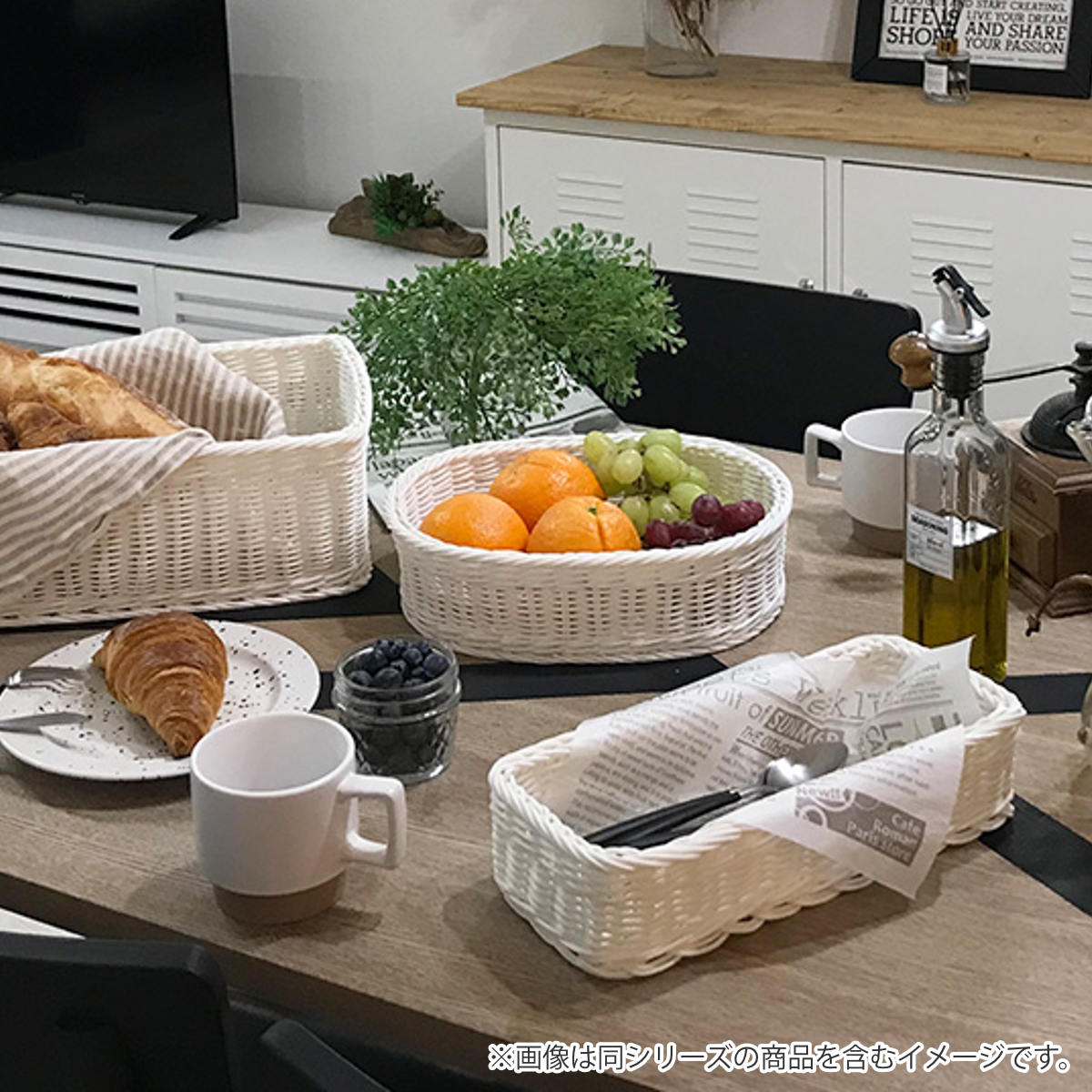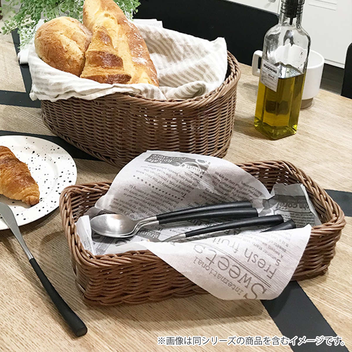 かごを編みやすい適正な粘度に加工し、抗菌素材を配合した素材をひとつひとつ職人が丁寧に編み上げて造られており、天然素材の温もりや味わいを再現しやさしい風合いを感じられる逸品です。