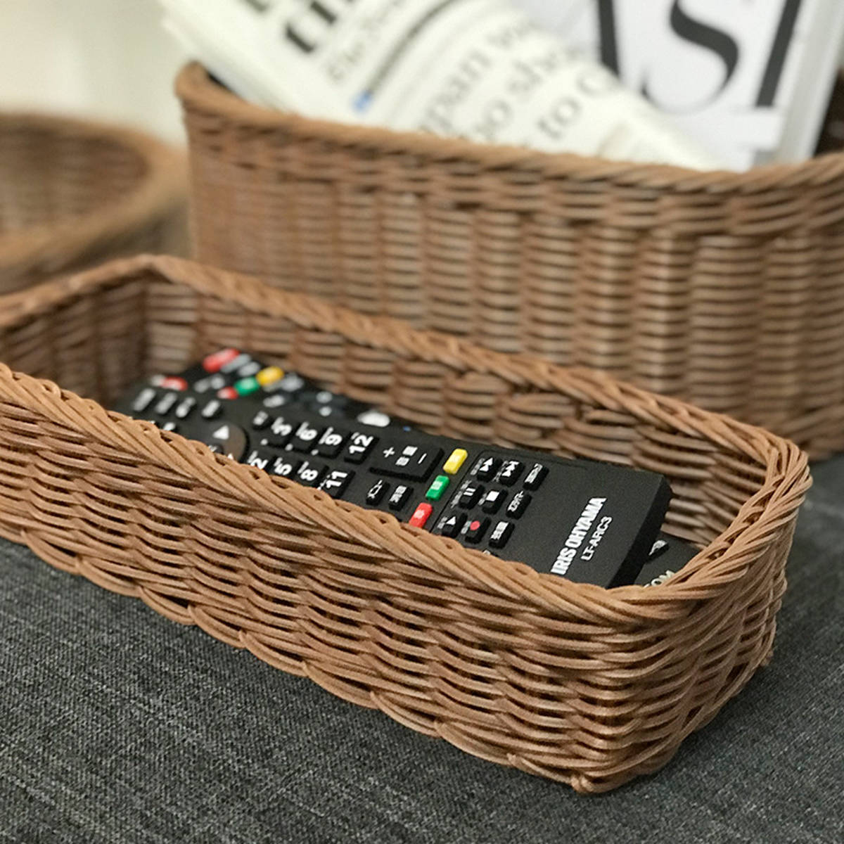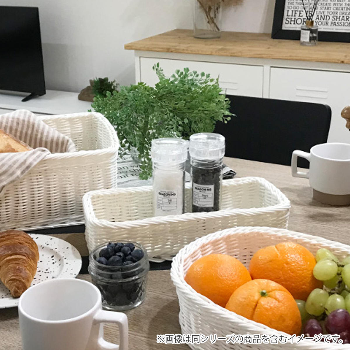 キッチントレー KLEANE PLUS 洗える 抗菌素材の小物入れ バスケット L ( カトラリーケース 抗菌 トレイ 電子レンジ対応 食洗機対応 スパイスラック 小物 キレーネ 手編み かご SIAA 水洗い ラタン調 シンプル 北欧 キッチン ) 【グレー】