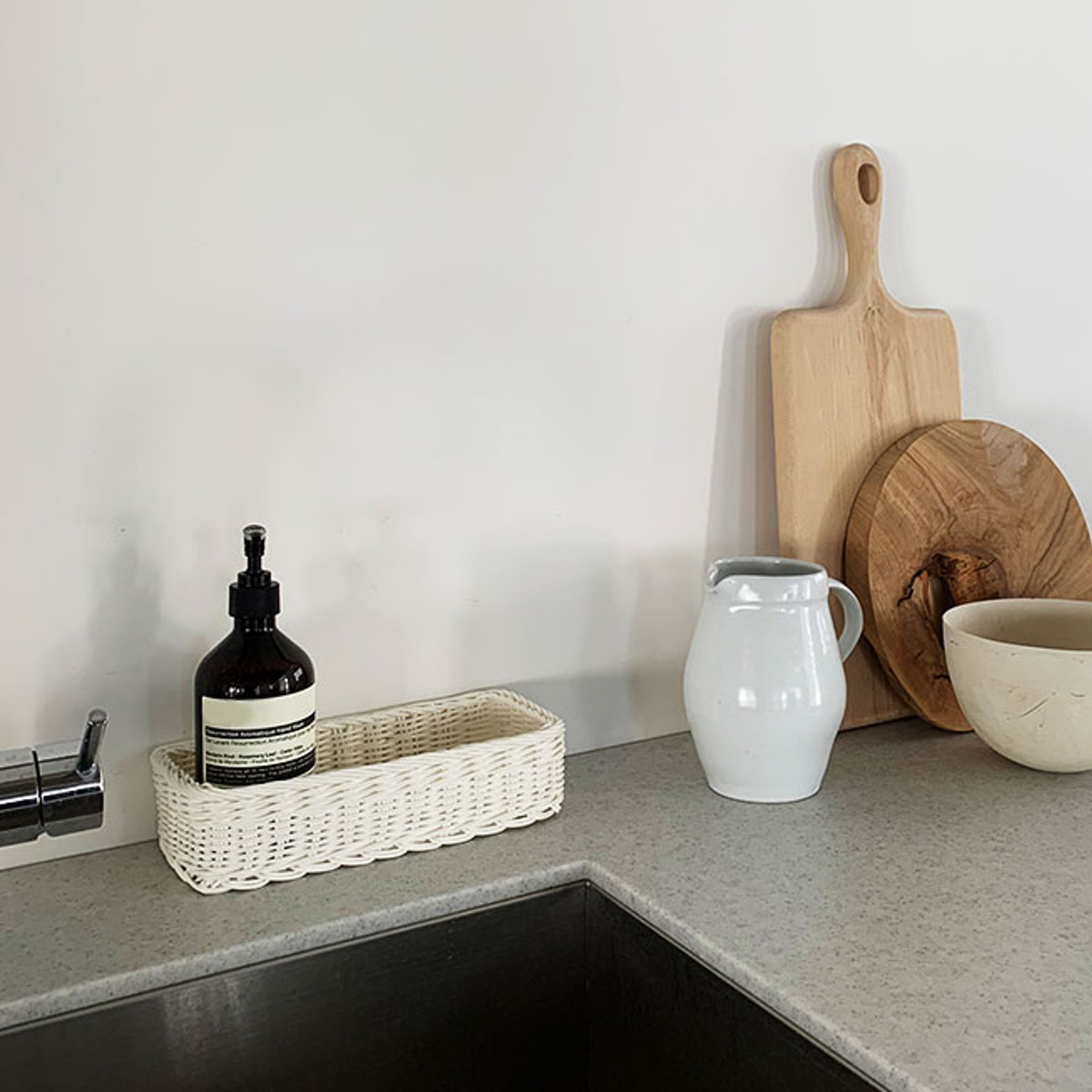 水や湿気に強い抗菌素材を使用したキッチントレーです。丸洗いができ、汚れが気になった時にもすぐに清潔を保てます。抗菌素材ならではの安心感に加え、デザイン性にもこだわっているので、毎日の食卓をより素敵に演出します。