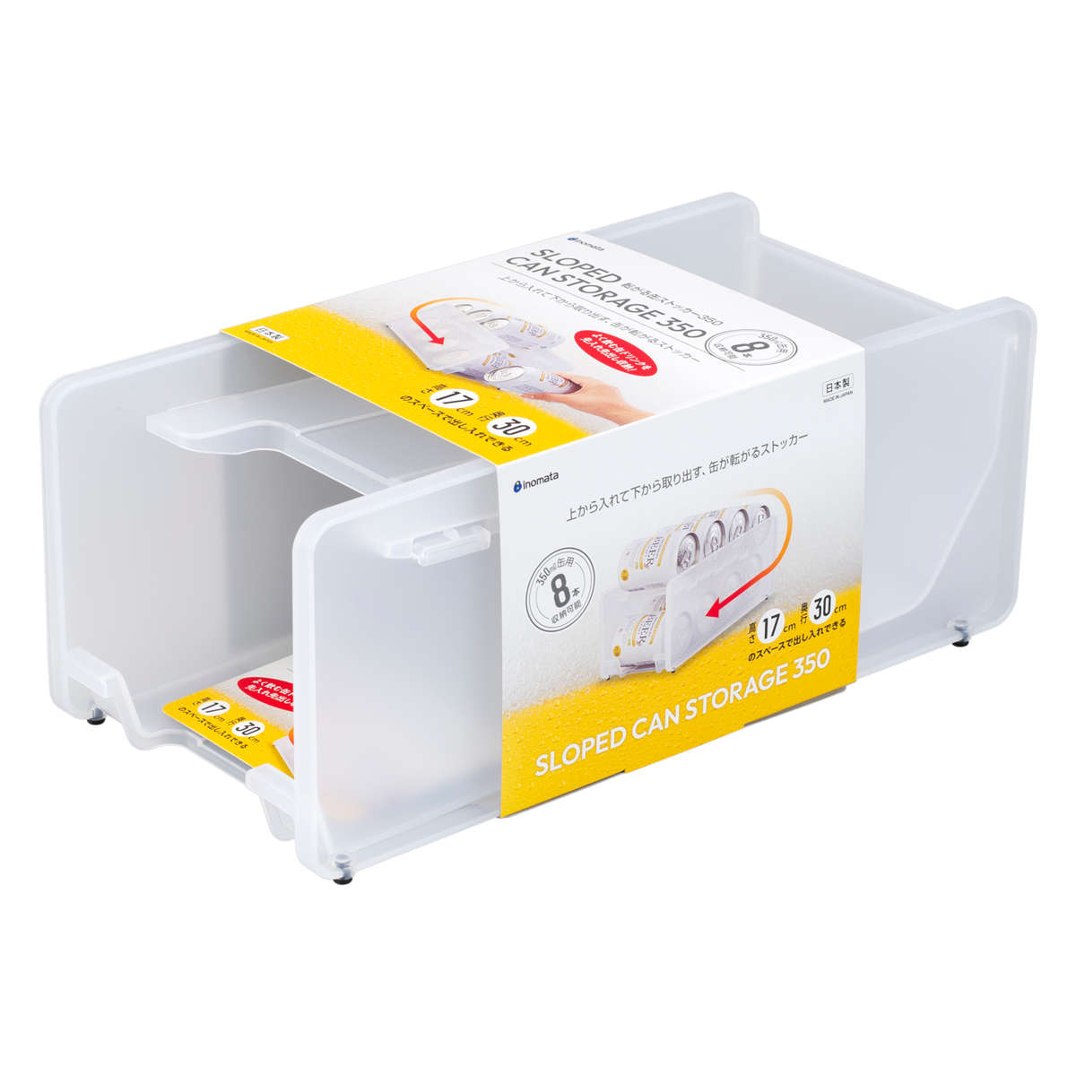 缶をスマートに取り出せるスロープ設計