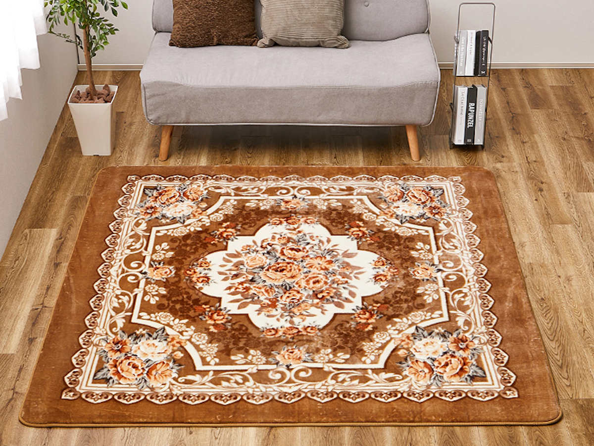 クラシカルな花柄が散りばめられた、高級感漂う立体デザインで、お部屋に敷くだけで優雅な空間を演出するホットカーペットカバーです。シックで使いやすい2色展開なので、インテリアに合わせてお好みでお選びいただけます。