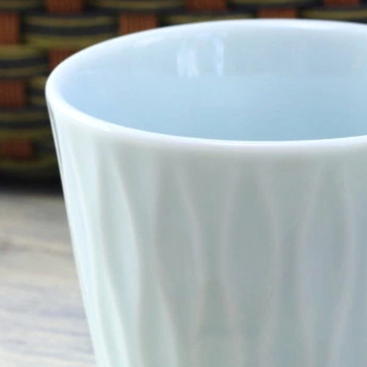 側面には、有職文様の代表格である立涌文のレリーフを施し、釉薬の下から浮かび上がるような上品な表情が魅力です。ほどよい凹凸が手に馴染み、持ちやすい形状になっています。