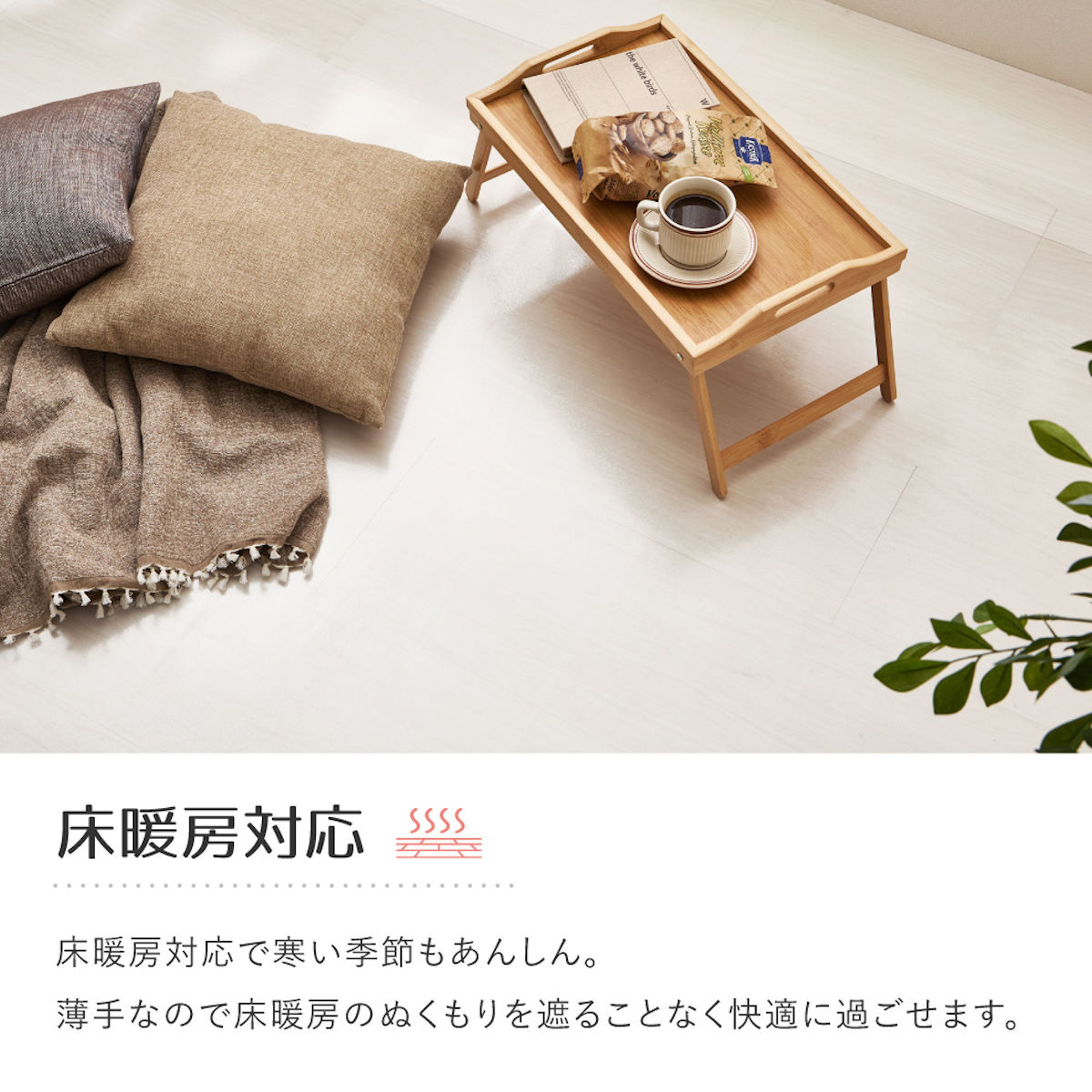 床暖房に対応していますので、床暖房のお部屋でも安心してお使いいただけます。寒い季節にも温かさを逃さないので、オールシーズン快適に過ごせます。