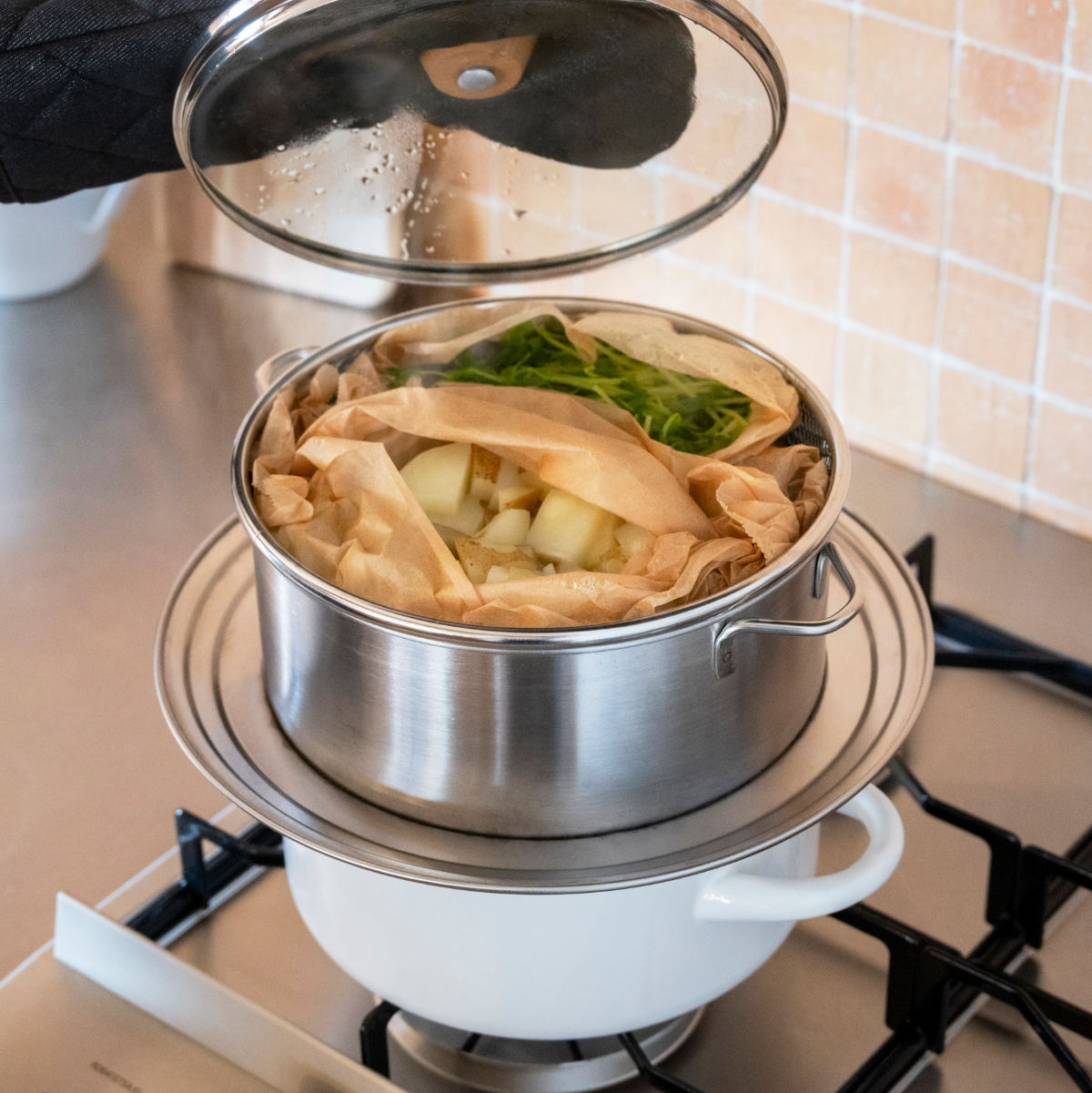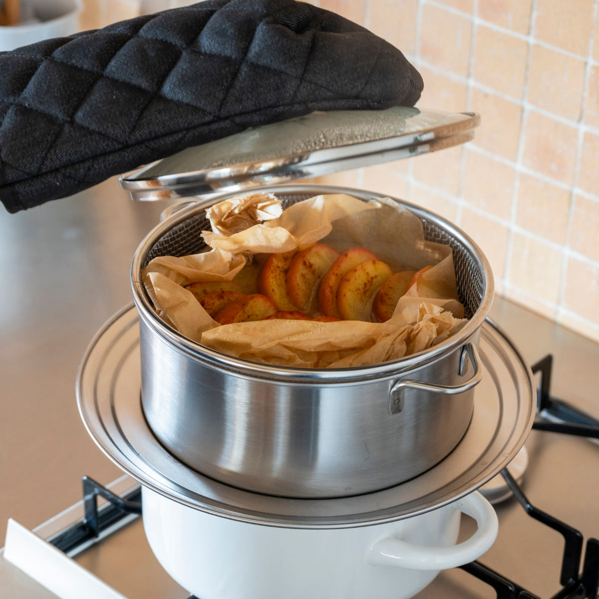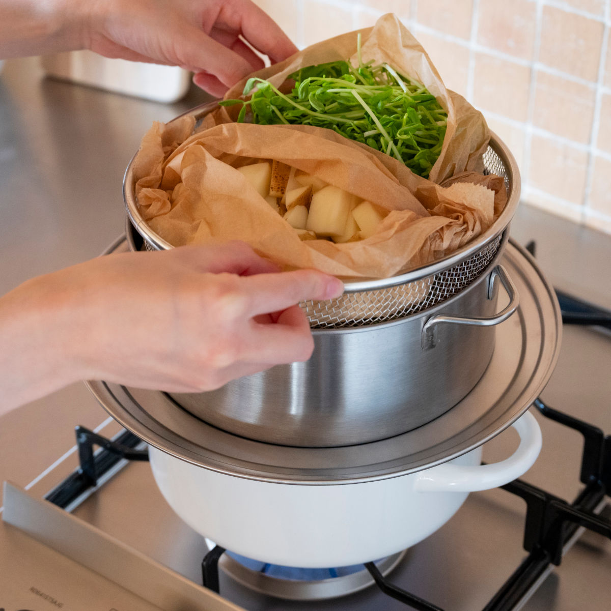竹製せいろの風合いは魅力的ですが、「衛生面が心配」「お手入れが大変」「収納場所に困る」そんな声に応えて登場したのが、扱いやすいステンレス製せいろです。初めての方でも気軽に蒸し料理を楽しめます。