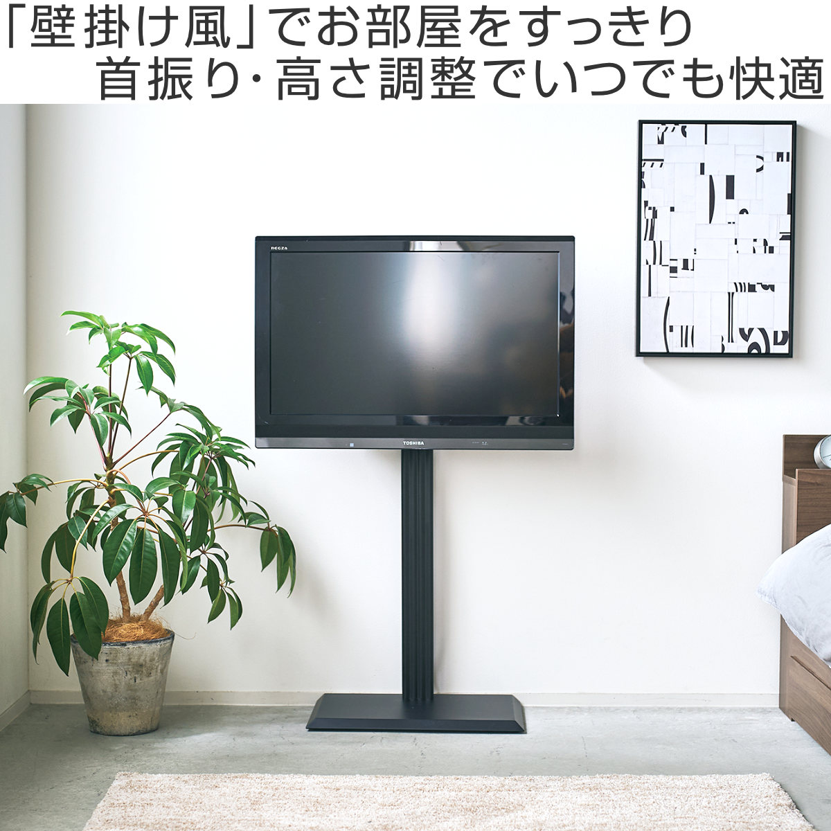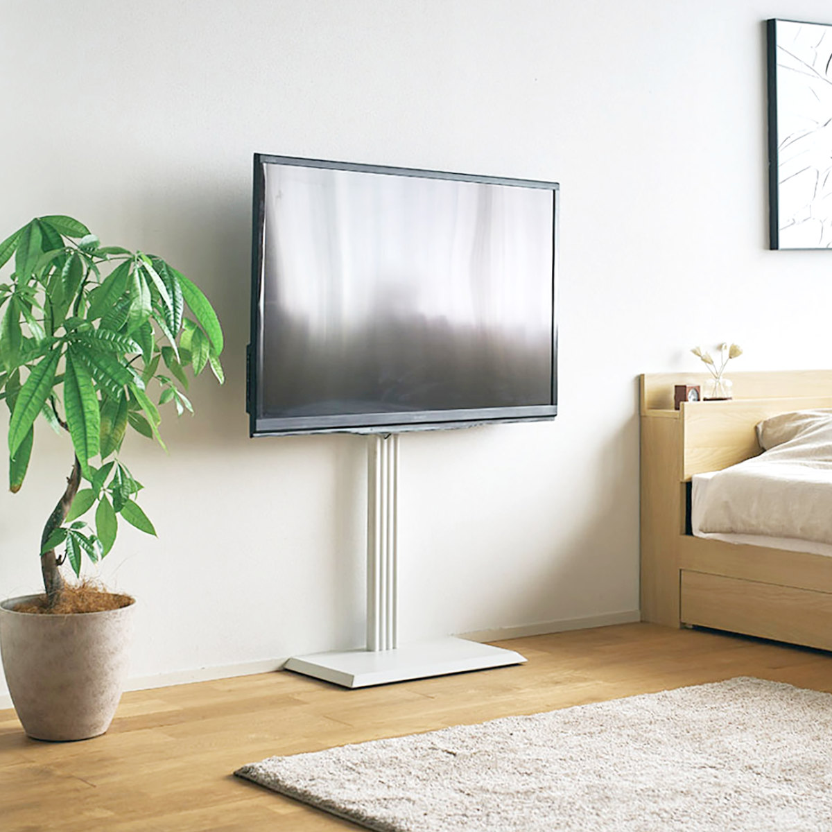 壁に穴を開けずに「壁掛け風」を実現するスリムスタンドで、32~50型テレビに対応。高さや角度を調節できるので、ソファ・床座り・ダイニングなどシーンに合わせて快適な目線で楽しめます。省スペース設計&配線収納付きで、お部屋を整えたい方にぴったりのテレビスタンドです。