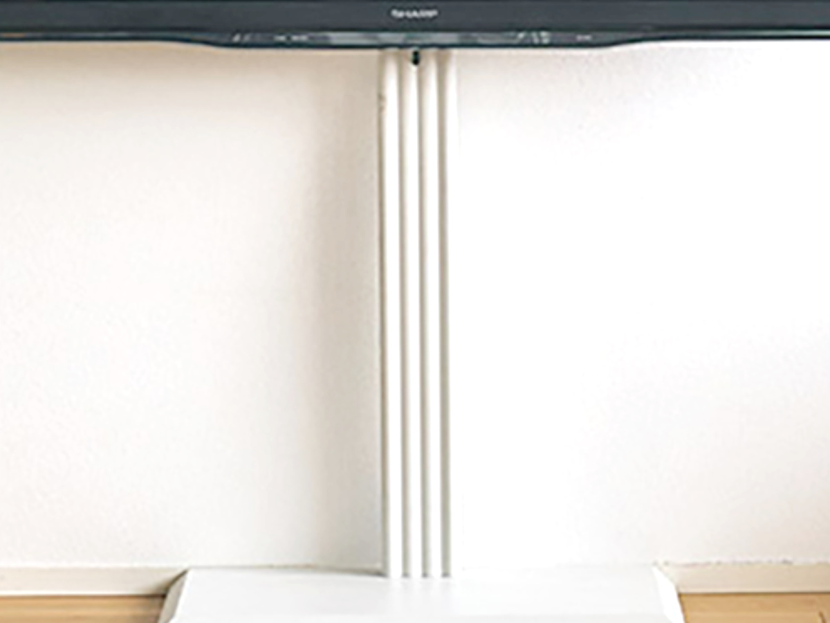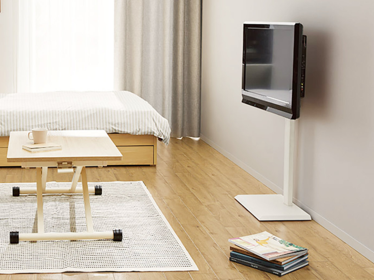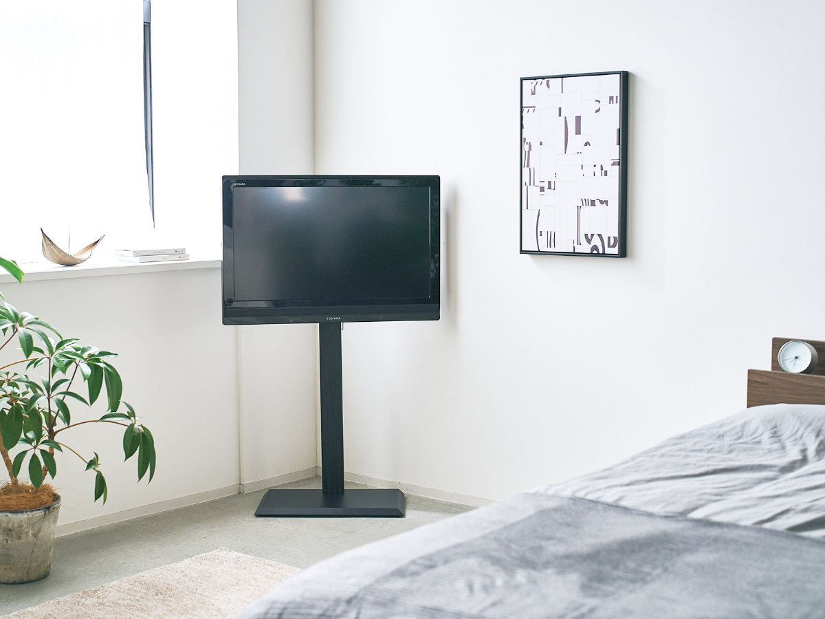 スリムな支柱と小型の土台で構成された省スペース設計。リビングはもちろん、寝室やダイニングにも設置でき、お部屋を広々と開放的に見せます。